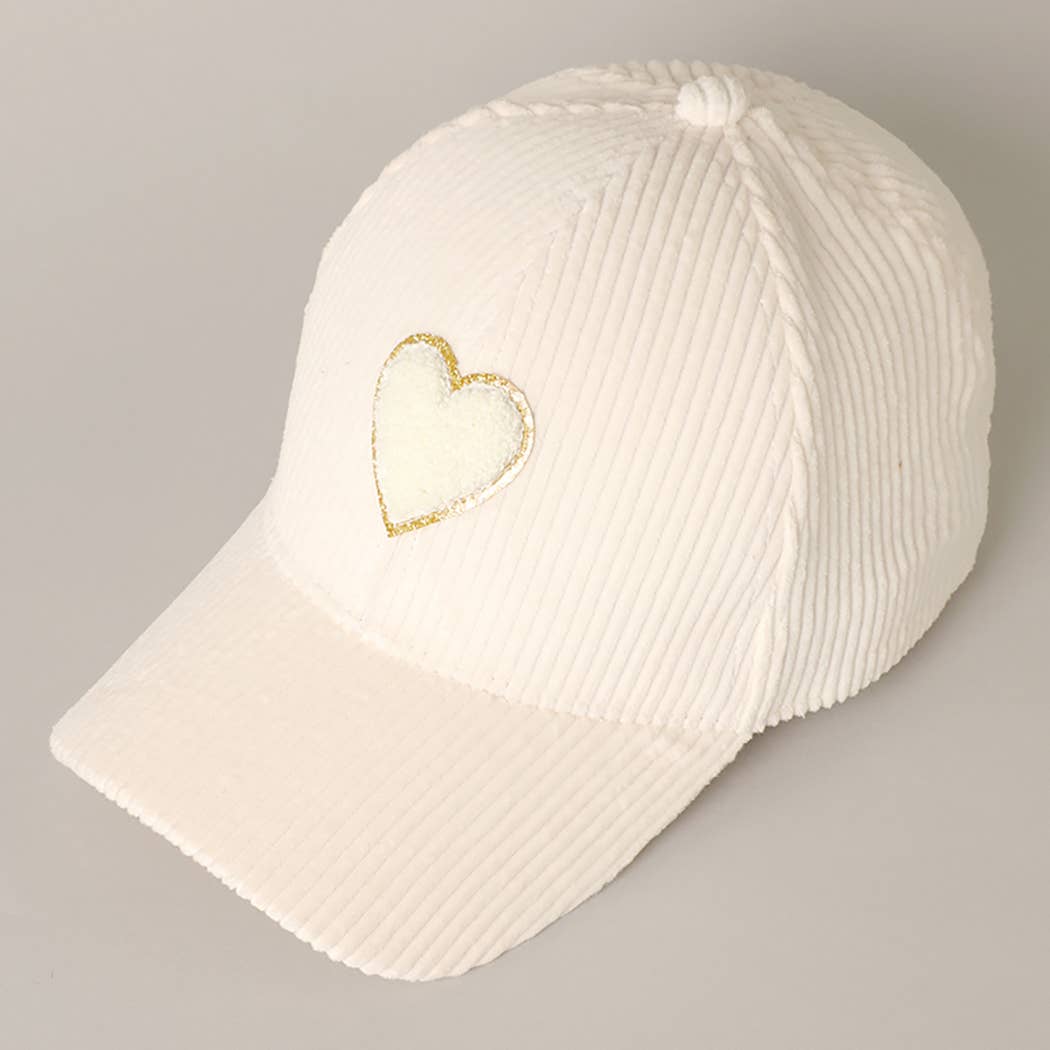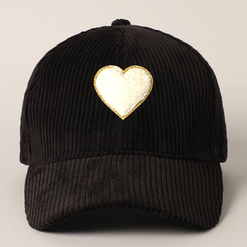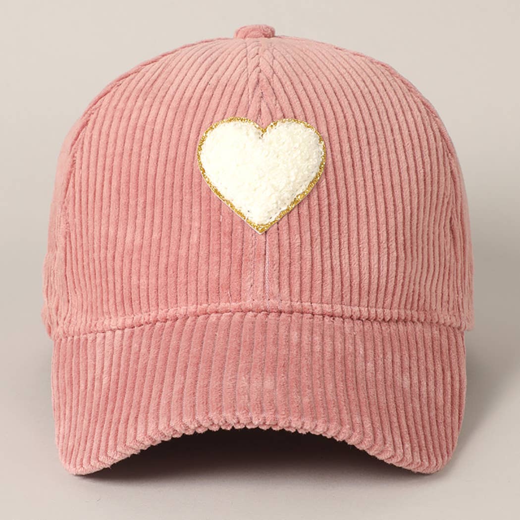 Fashion City - Women's Chenille Heart Patch Corduroy Baseball Cap: One Size