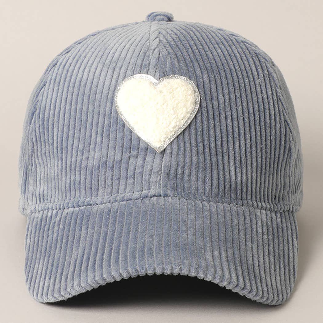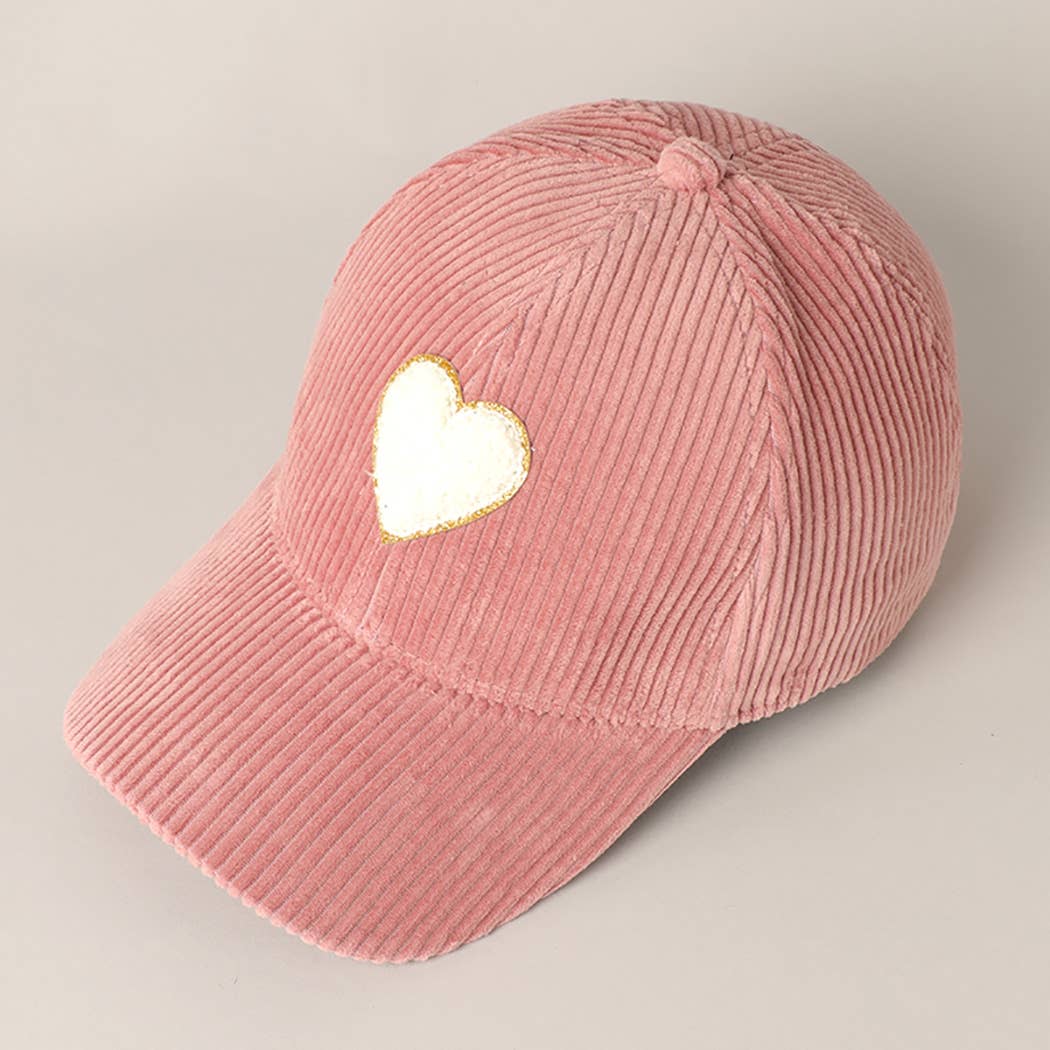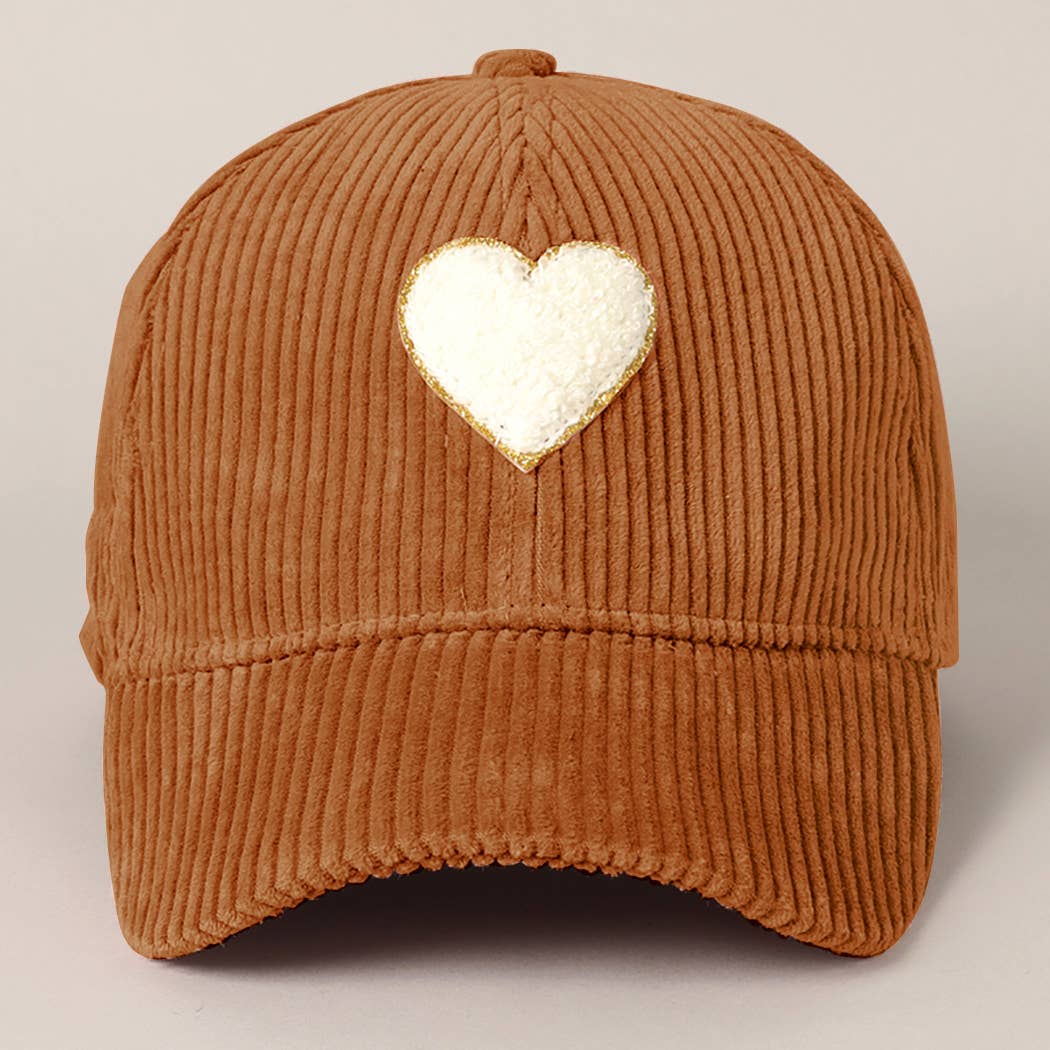 Fashion City - Women's Chenille Heart Patch Corduroy Baseball Cap: One Size
