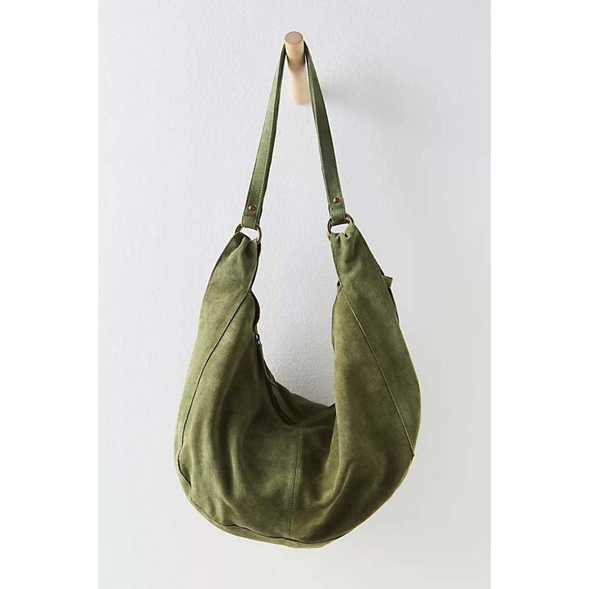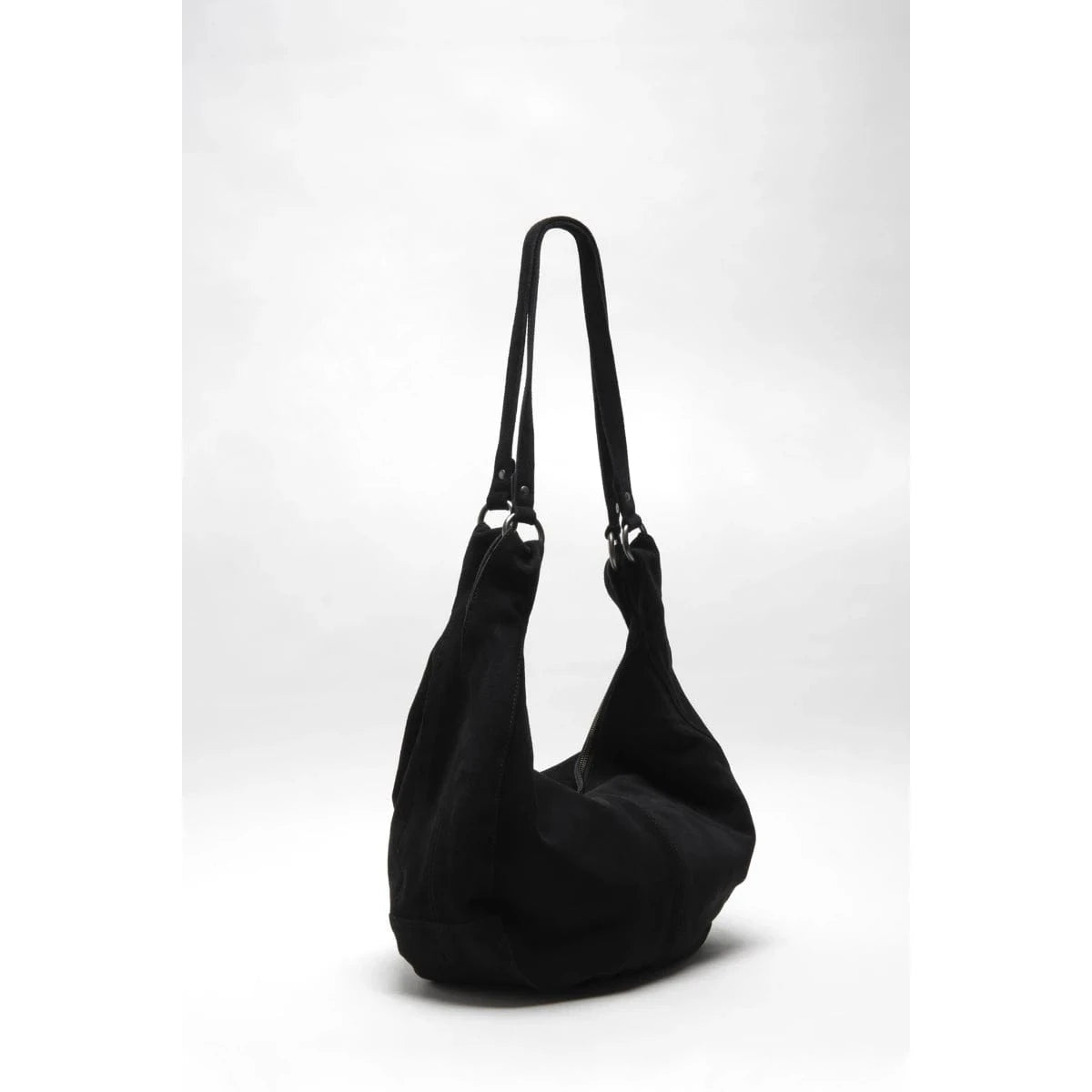 Effortlessly functional, this tote bag is featured in a slouchy hobo style with two elongated shoulder straps, all in soft suede fabrication with zipper closure for the perfect go-to bag.