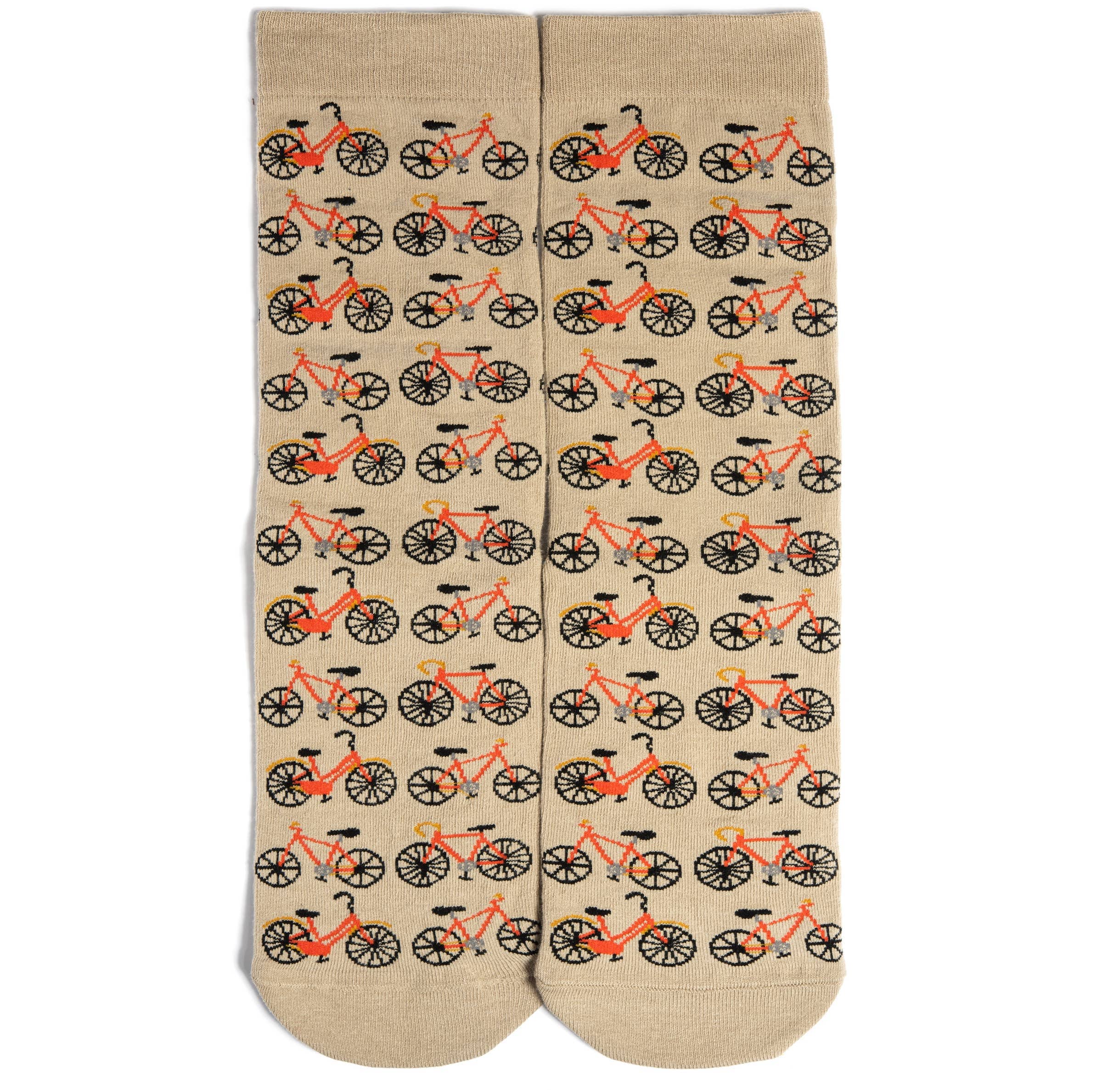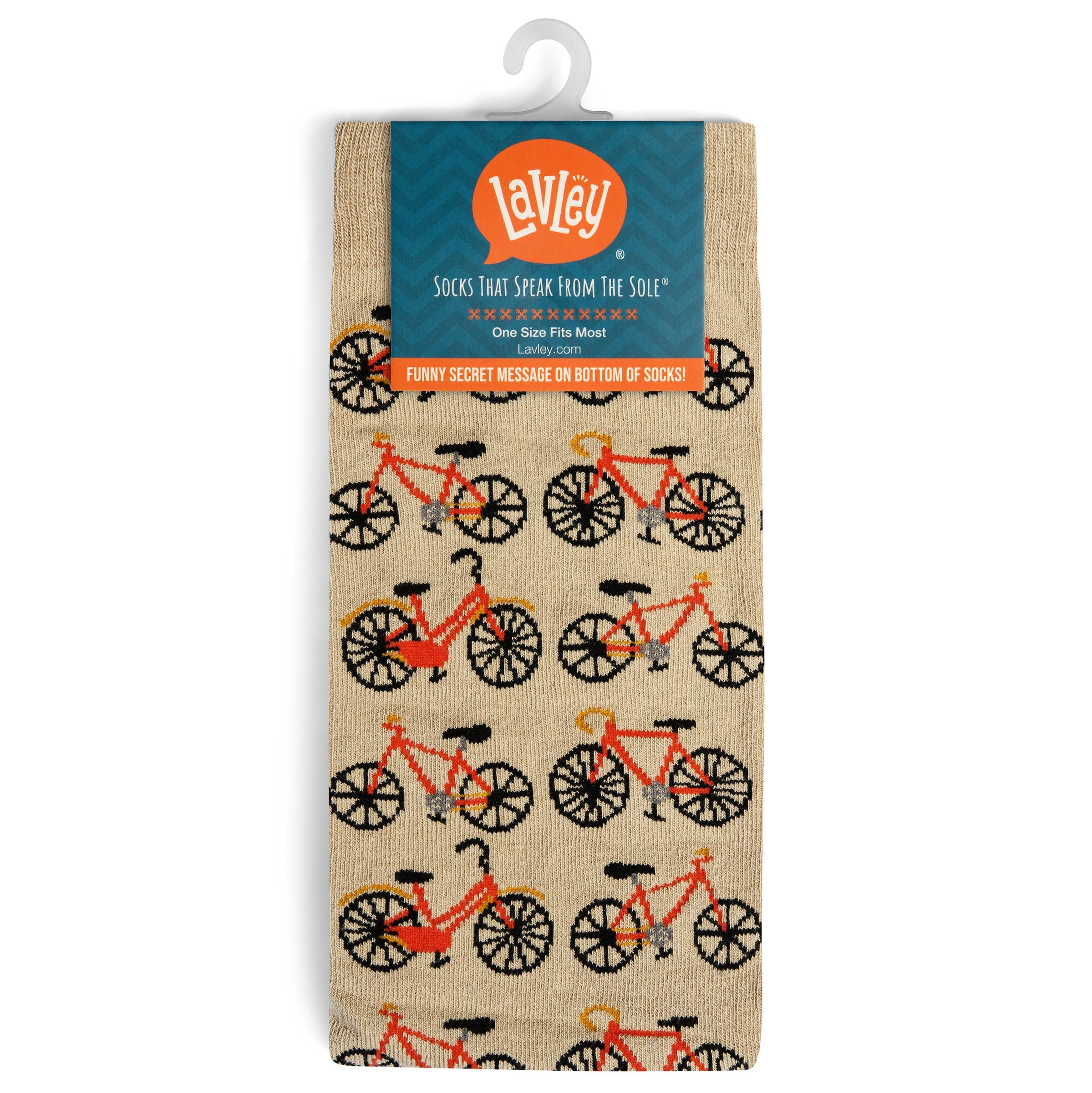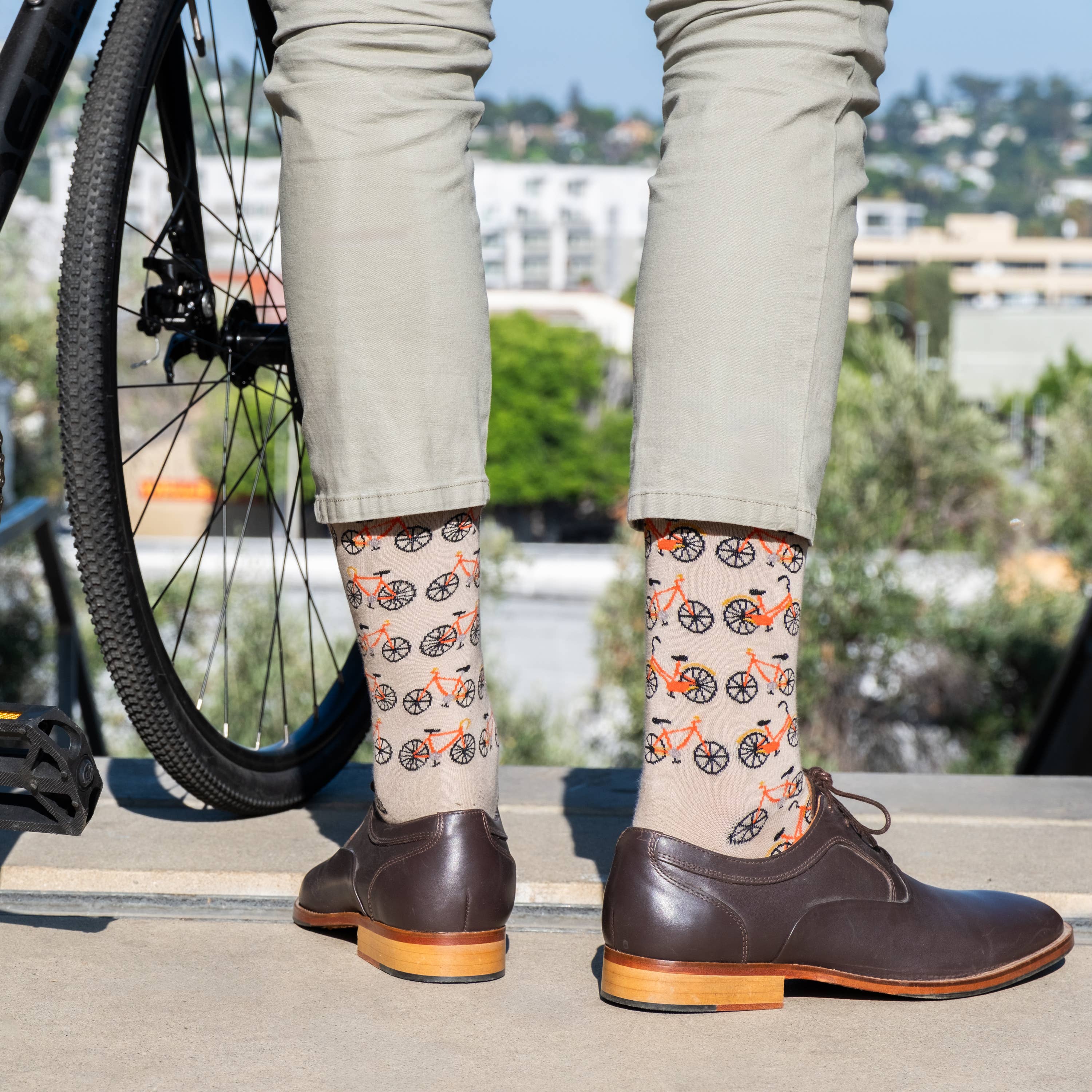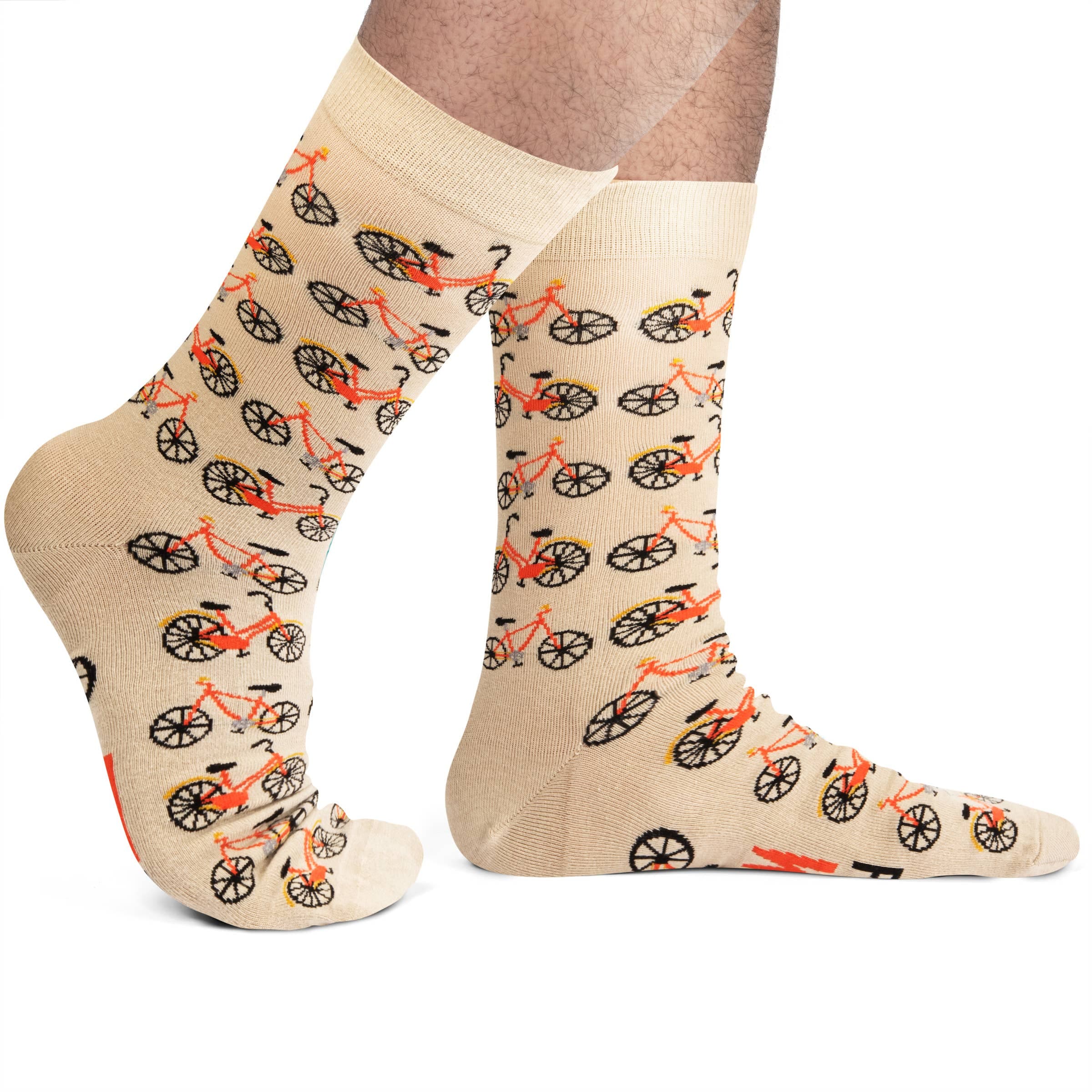 **Product comes packaged half length, unless requested otherwise** Introducing our dapper crew socks designed for cyclists - the perfect blend of style for both work and biking. These socks feature original, unique art with a cool bicycle pattern, and a hidden message that's sure to bring a smile to any bike lover: "Born to Bike, Forced to Work." These fun socks make a wheelie awesome gift for cyclists and bike enthusiasts on their birthday, Christmas, or any special occasion. Whether they're on a bike ride, at the office, or simply unwinding at home, these socks will be a cherished reminder of your thoughtful gesture. PRODUCT DETAILS: * Crew Length * One size fits most (U.S. Men's size 6-13, Women's size 7-11) * 62% Combed Compact Cotton, 35% Nylon, 3% Spandex * Machine wash cold. Tumble dry low. Do not iron. ST