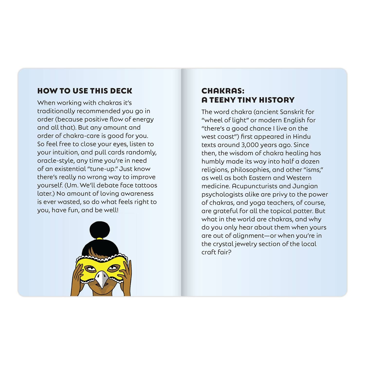 This enlightening, witty-yet-spiritual deck is packed with fun, easy, self-caring activities to support your chakras and give yourself a lil’ energetic glowup every day, including: fill-in-the-blank meditations, creativity generators, chakra-boosting yoga poses (& foods & pop songs!). • 3.75 x 4.75 x 1.25 inches • 49 chakra cards + + 40 page booklet with cover • File under: meditation accessories, mindfulness cards, holistic healing cards, oracle cards!