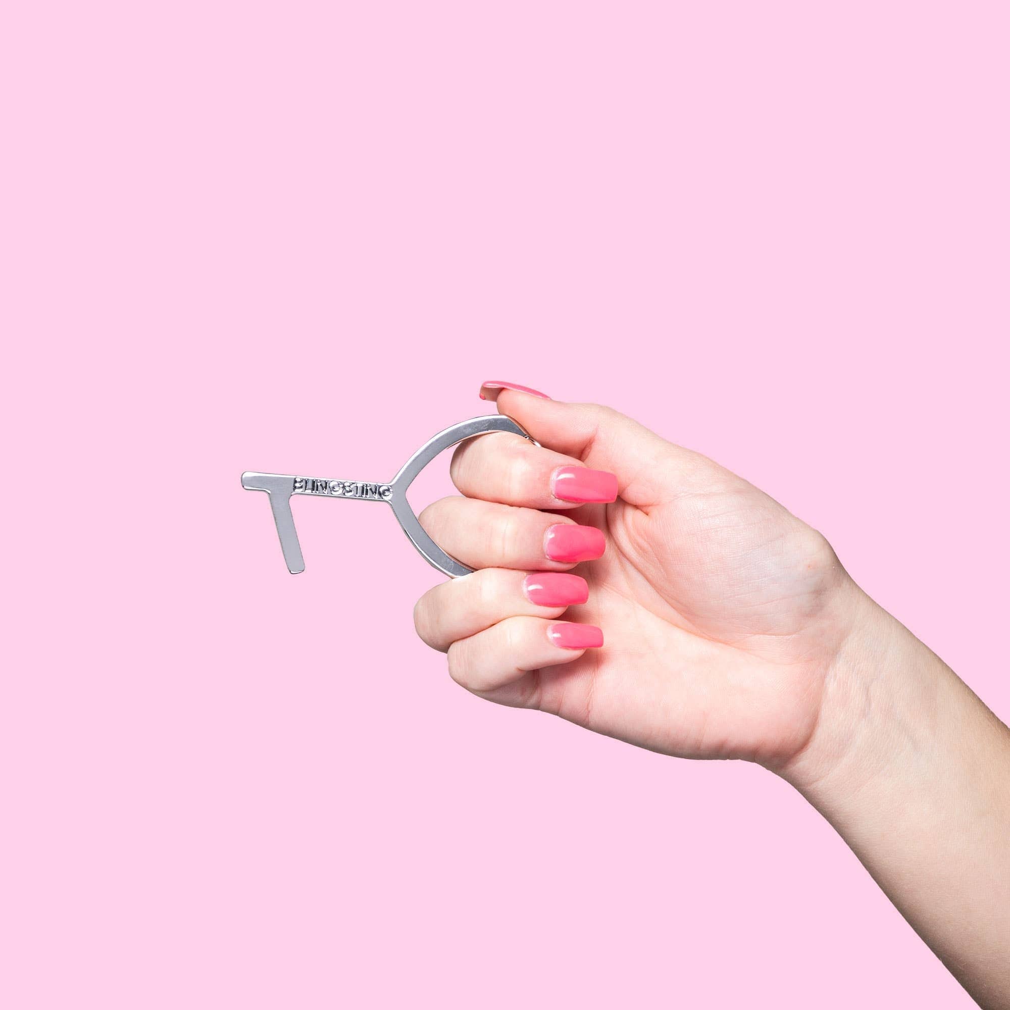 This germ-free gadget opens doors so you'll never have to say 'ewwww' when you touch something again. Contactless tools help reduce the need to touch surfaces like door handles, cash point keypads, and elevator buttons where yucky bacteria and scary viruses live. PRODUCT DETAILS No-touching tool Keep hands free of germs Attaches to your keyring Dimensions: 3.1 x 1.8 inches