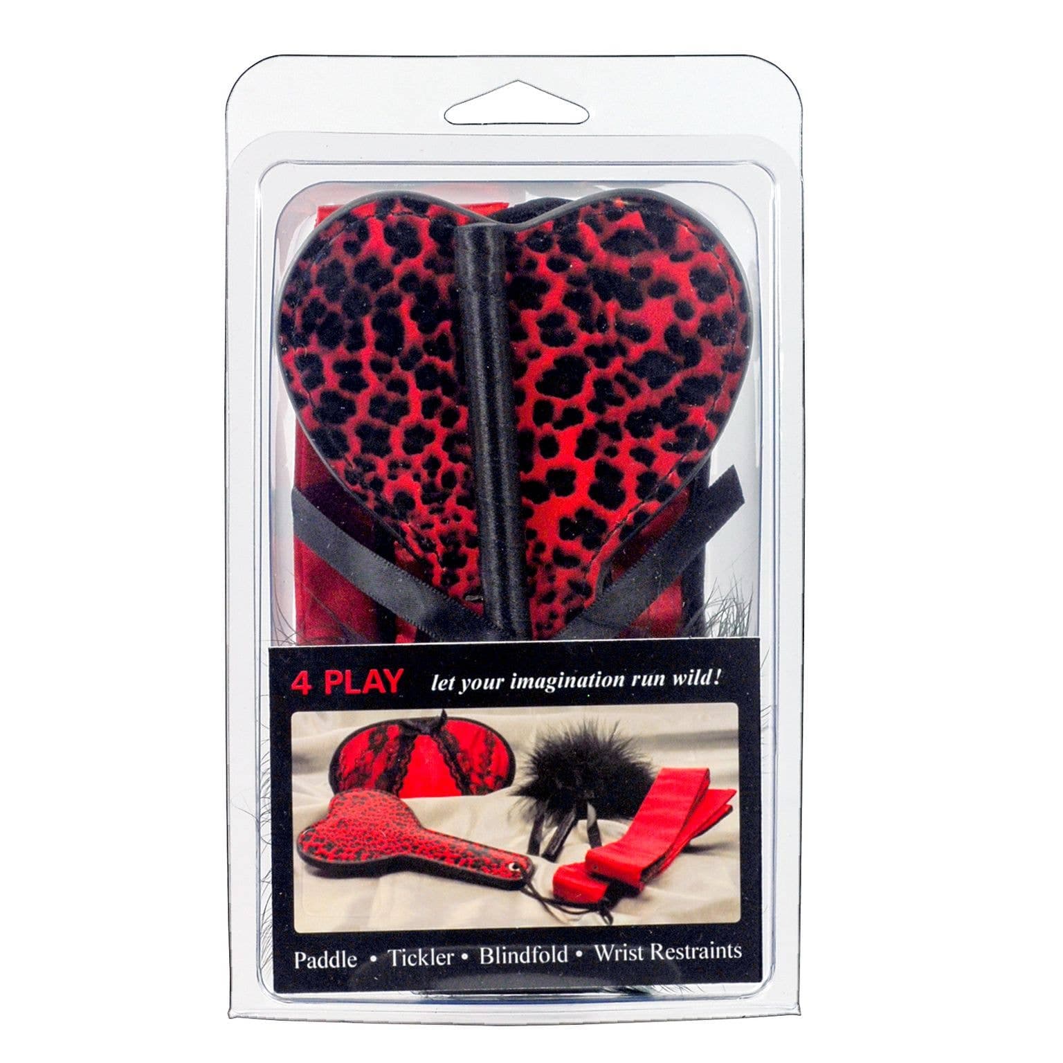 Let your imagination run wild with Braza's Foreplay Soft Bondage Kit. Each kit contains a paddle, tickler, blindfold and wrist restraints.
