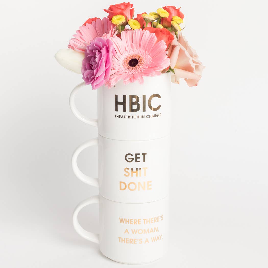The ultimate way to start your morning routine. Our "Where There's a Woman There's A Way" coffee mug has a gold foil imprint and is perfect for your coffee, tea or wine. Oversize 16oz. Ceramic Mug Gold Foil Lettering Stackable Hand Wash Only. Do Not Microwave.