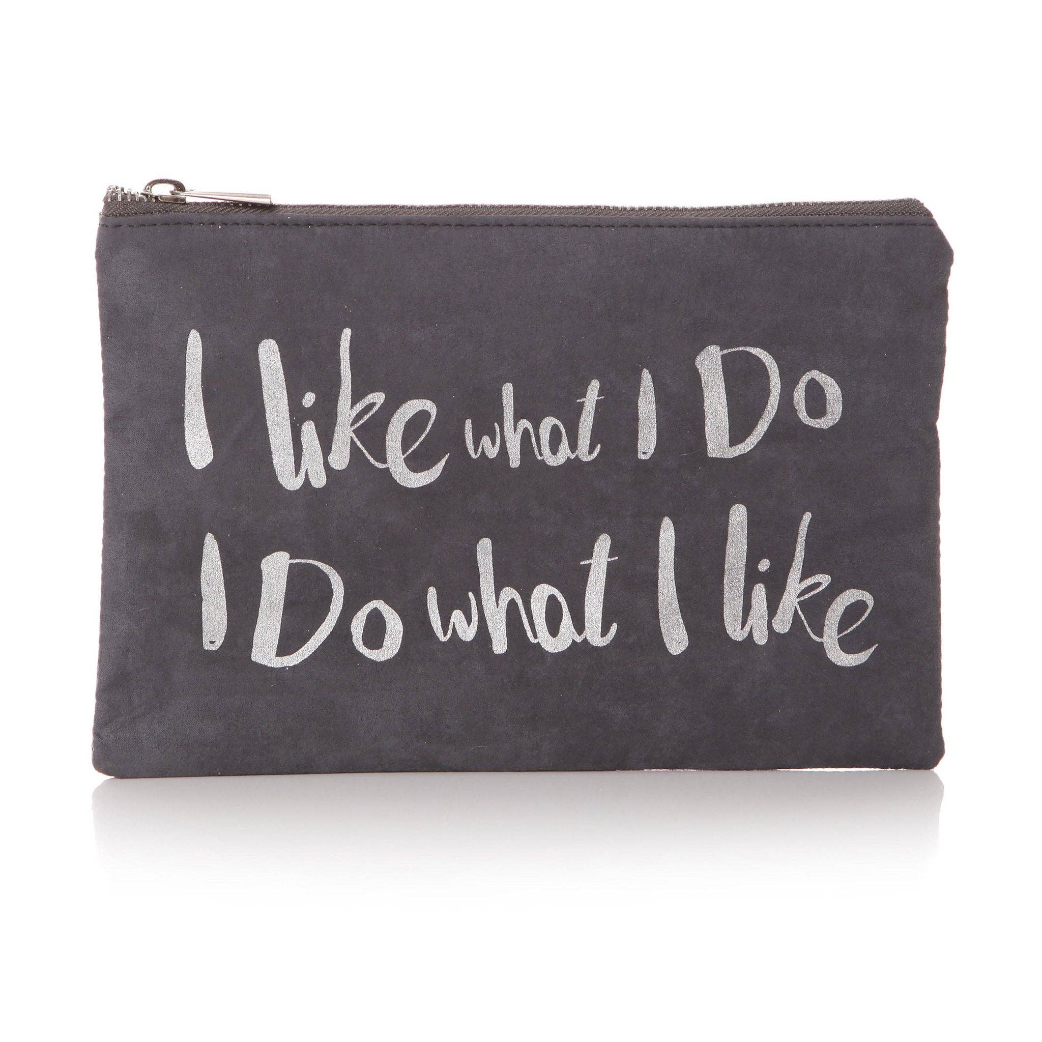 You'll be made up with this beautiful Shruti Cosmetic Bag, featuring plenty of room for all your make up bits and bobs that you simply can't go without. It has an easy zip to open and close, as well as a fabulously compact design, meaning that the bag will easily slip into any handbag with no fuss whatsoever. The stunning design includes a grey matte finish on the front as well as the words, I like what I do, I do what I like in silver detailing, while the reverse has a wonderful silver glossy finish for an added touch of style.