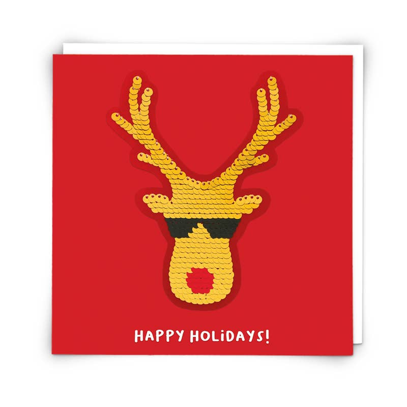 Holiday Rudolph Card with Reusable Reversible Sequin Patch