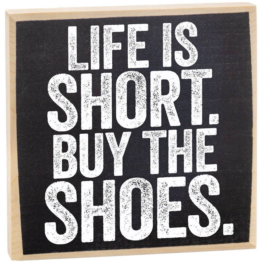 Life is Short, Buy The Shoes - Rustic Wooden Sign - READY TO HANG OR DISPLAY - My signs come ready to hang with a hole on the back for mounting. Just place a small nail where you want it and hang it. DISPLAY ON A DESK OR SHELF - Because we use 3/4" solid wood our signs will sit upright without support