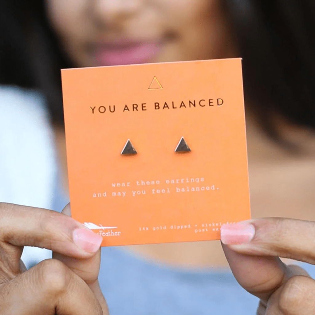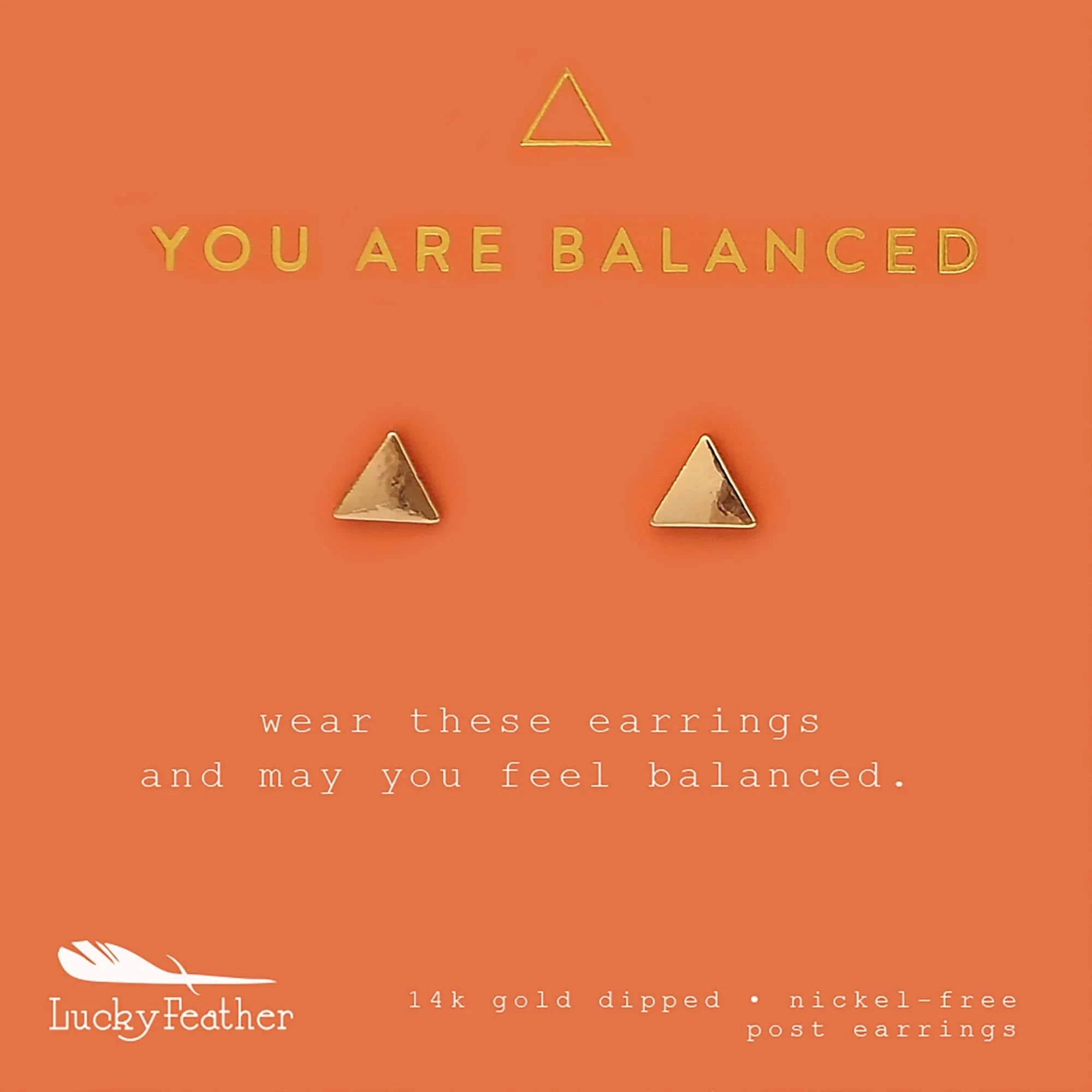 Lucky Feather You are Balanced - Gold Triangle Earrings