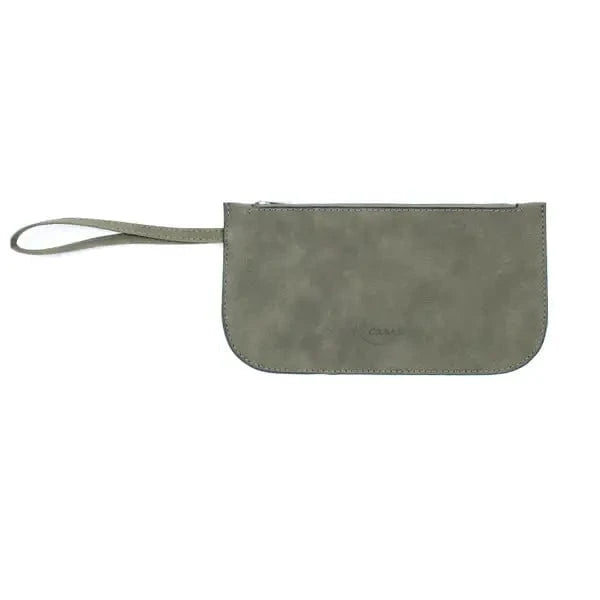 A wristlet with a simple design. Long enough to fit larger cell phones and wide enough to fit a passport. Top zipper closure is 7.25” long, opens wide enough to get in and out easily. A great little accessory to store all your special extras, like a lip stick and glasses. A perfect match to our faux suede Taylor Tote! Specific Details Include: Zipper closure Wrap strap on your wrist or wrap on your favorite handbag. Constructed of faux suede, a better alternative as it is made of millions of fine polyester fibers, durable, animal friendly and easy to clean Dimensions: 9” W x 4.75” H x .25” D Zipper length 7.25” Wipe clean with a damp cloth