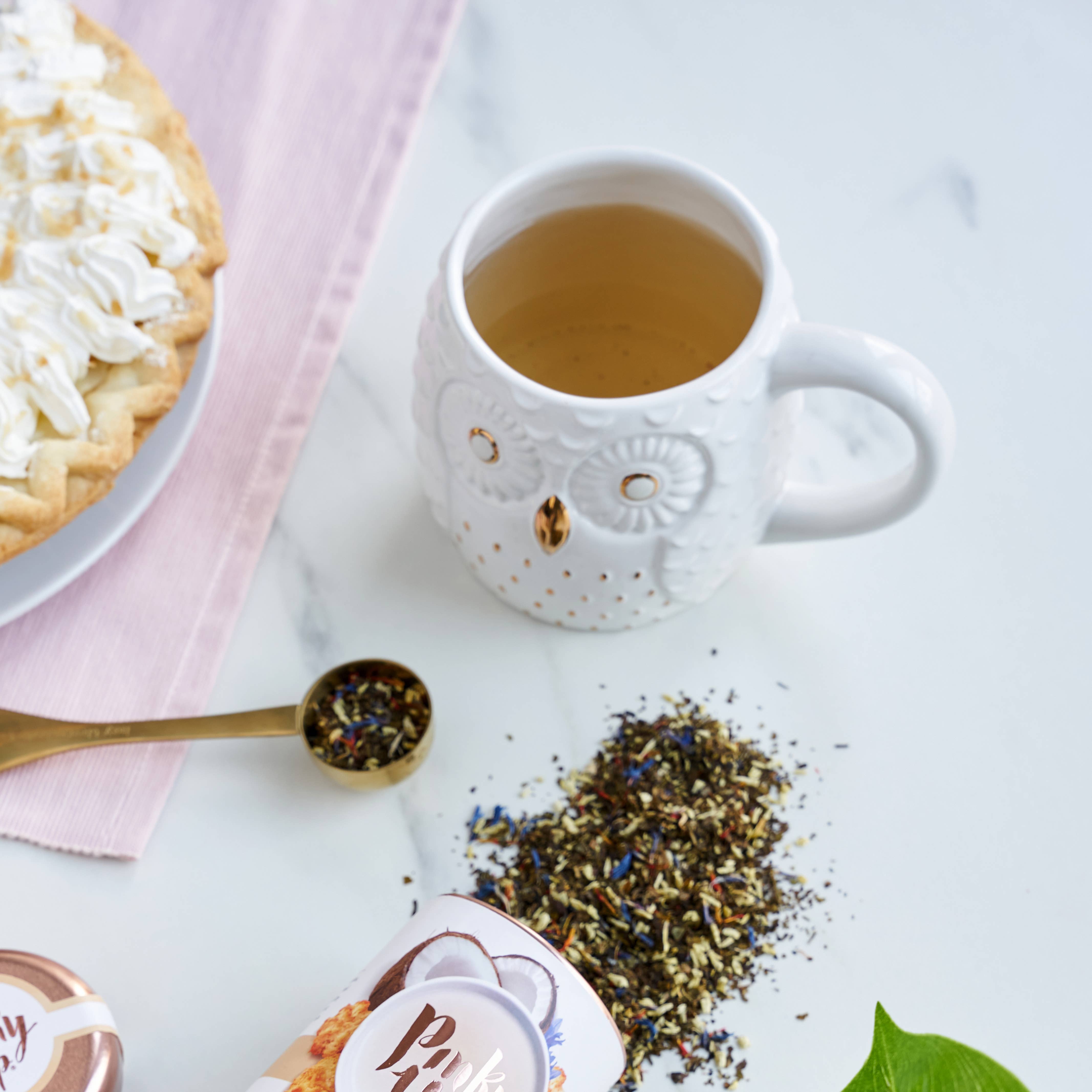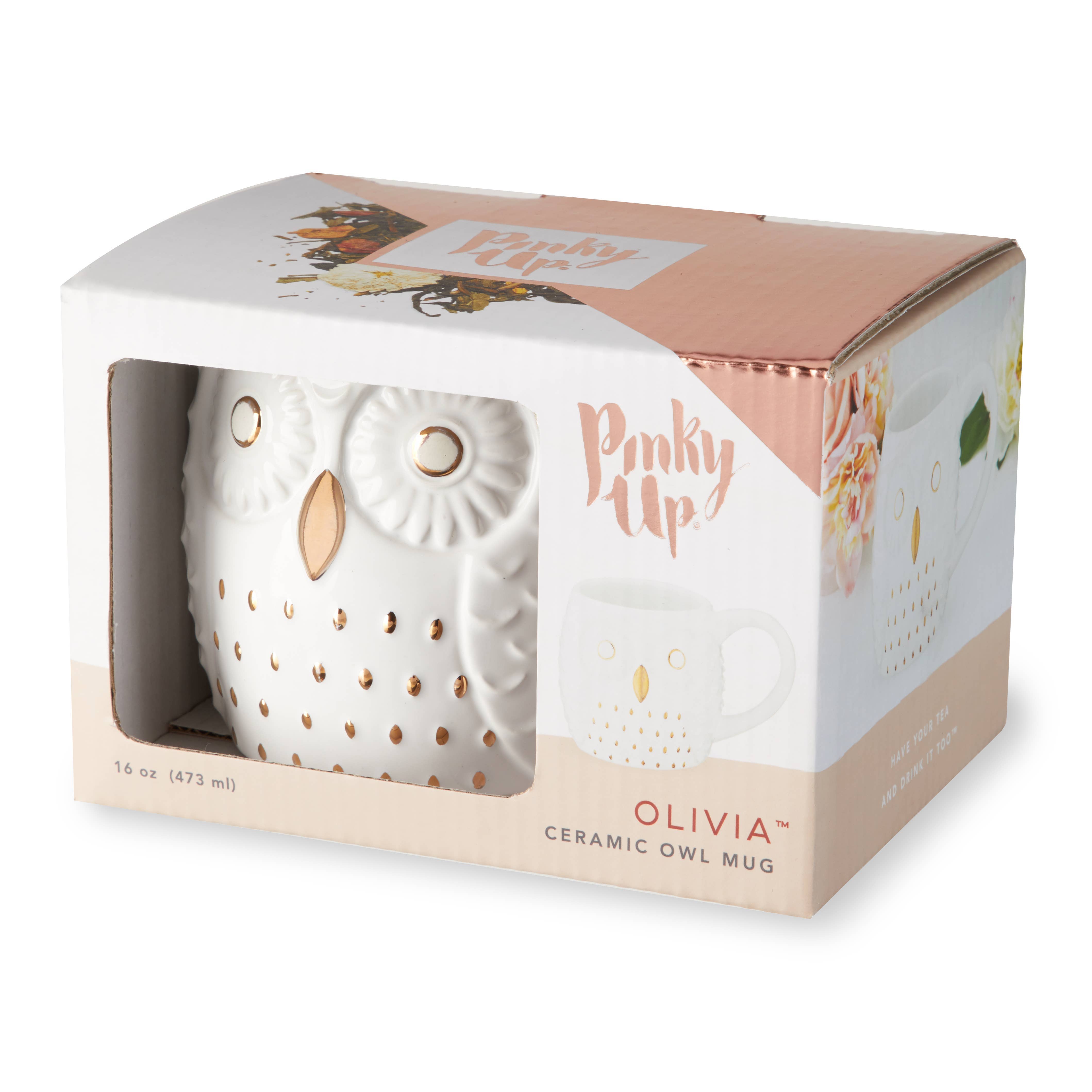 This sweet, wise owl mug is sure to bring a smile to your face over morning coffee or a bedtime cup of tea. The dimensional design gives this mug a pleasant tactile effect, while the ergonomic handle makes it comfortable to hold. Quantity: 1 mug Materials: Ceramic with gold accents Capacity: 16 oz. Details: 3D details, cute “Life’s a hoot” message inside Care: Hand wash, do not microwave Pinky Up tea is all about making loose leaf tea brewing easy and fun for everyone. With delicious dessert-inspired loose leaf teas, tea infuser mugs, cute teapots, electric kettles, tea strainers, and everything a tea-lover could dream of, our products are perfect for tea parties or brewing on the go. Complete with cute packaging, Pinky Up tea and teaware makes a beautiful gift or charming addition to any home.
