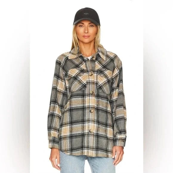 We are loving Steve Madden's Brooklyn Plaid Shacket. Beautiful grey and tan plaid with a button front, chest pockets and cuffed sleeves. Very soft to the touch. A flannel feel with a brushed finish. Perfect for dressing up or down. A great addition to any wardrobe!
