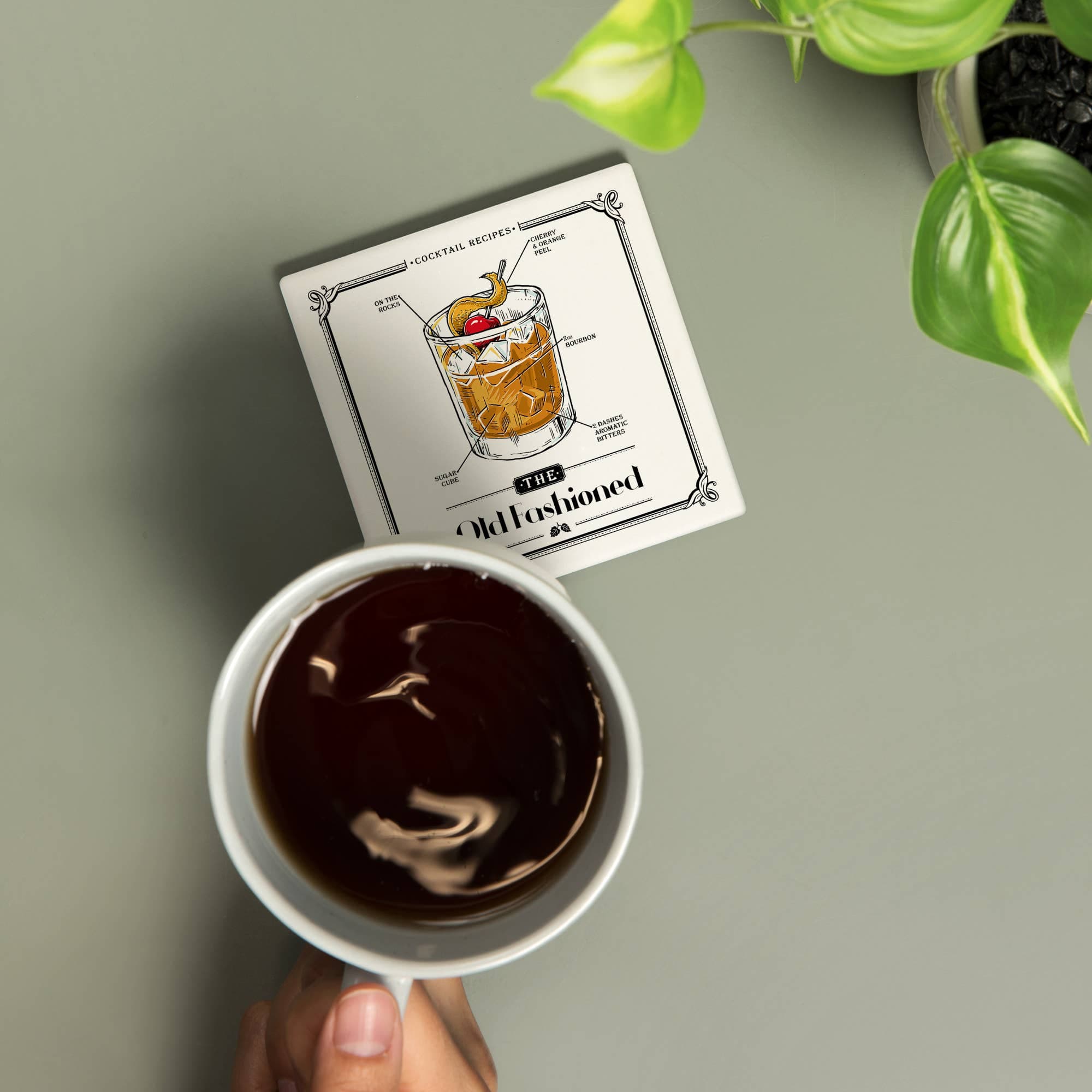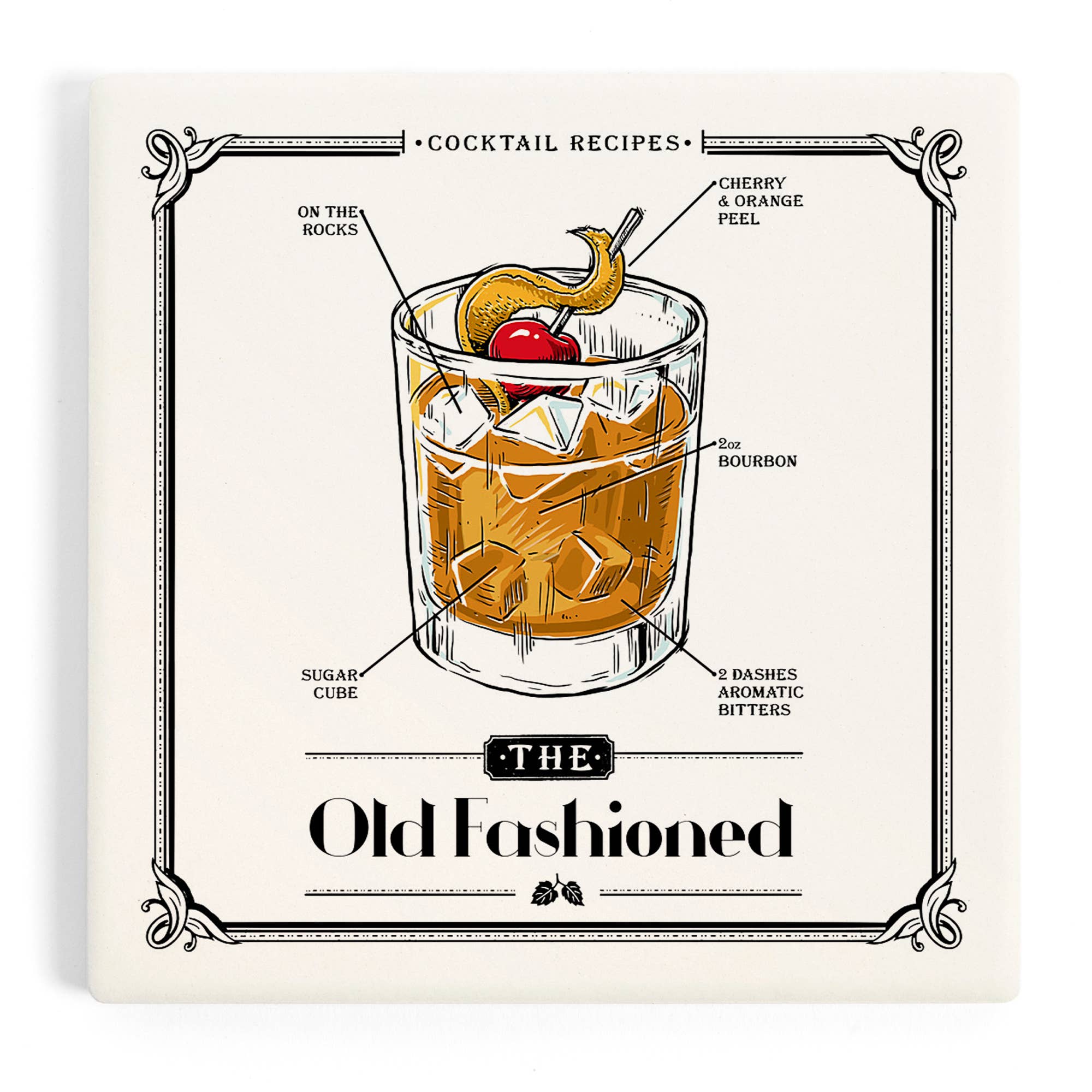 Lantern Press - CERAMIC COASTER Prohibition Cocktail Recipe Old Fashioned