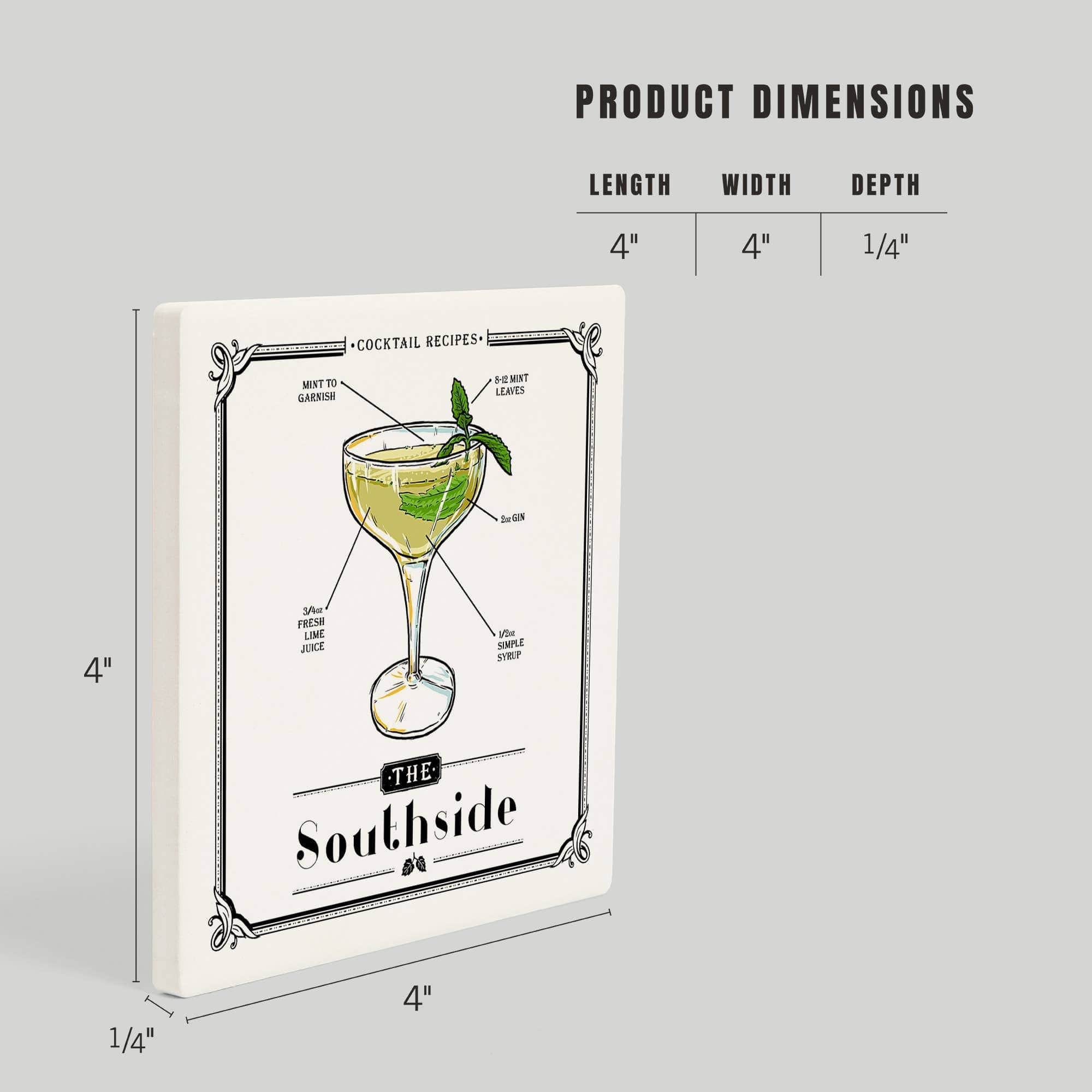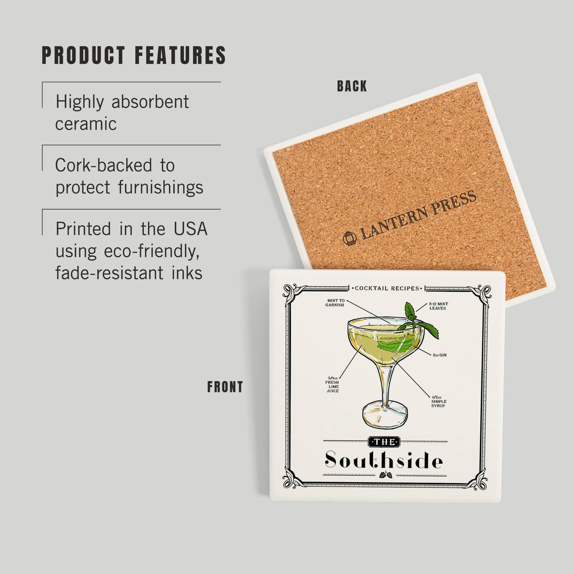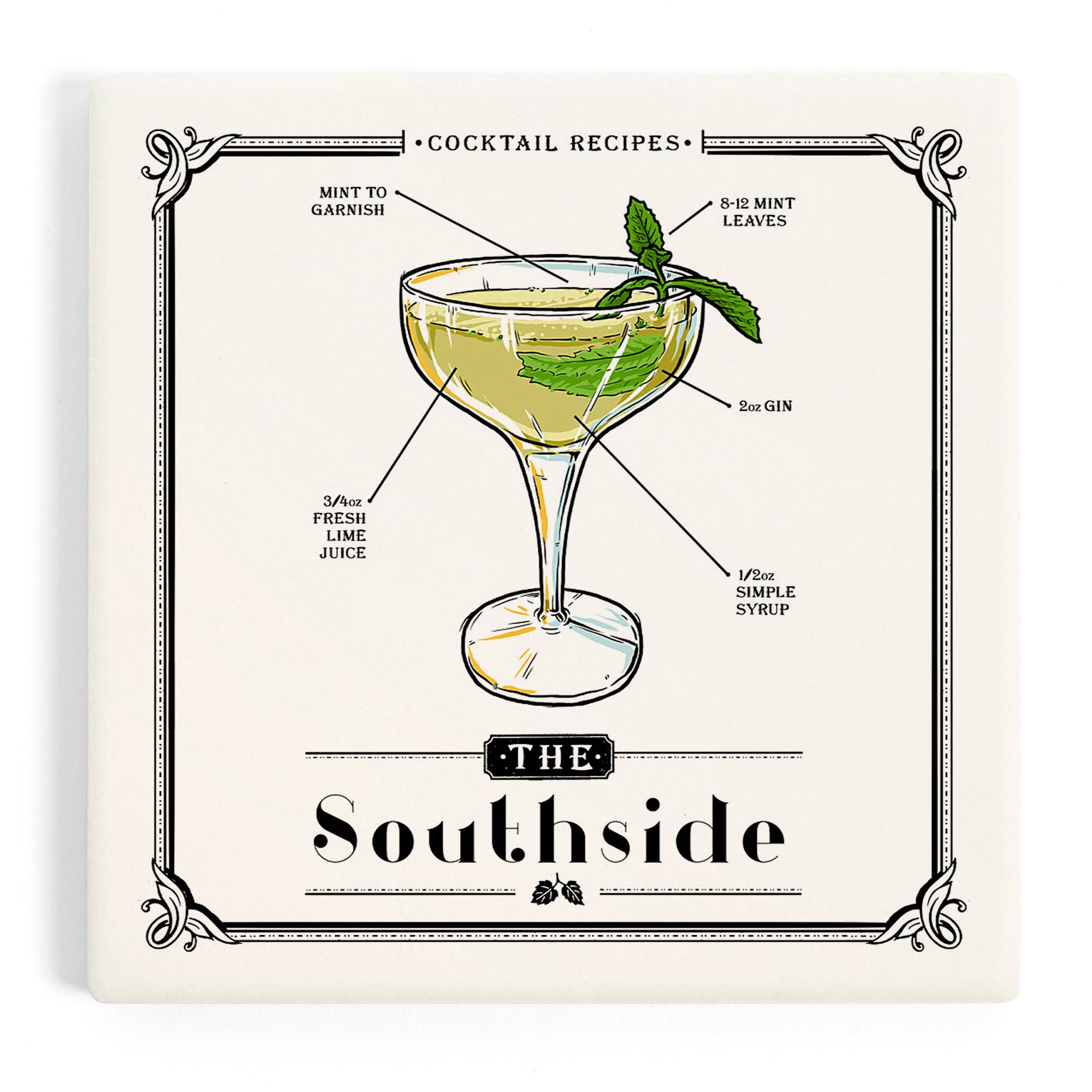 Lantern Press - CERAMIC COASTER Prohibition, Cocktail Recipe, Southside