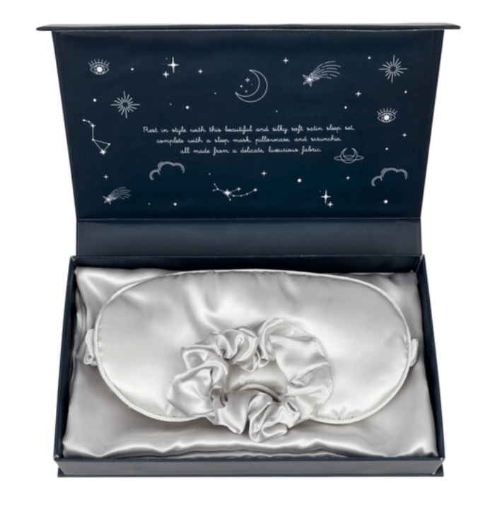 Rest in style with this beautiful and silky soft satin sleep set, complete with a sleep mask, pillowcase, and scrunchie, all made from delicate, luxurious fabric. They work together and help reduce friction, minimize hair frizz, breakage, and tangles, while also helping to retain skins moisture and lessen the appearance of fine lines. Package Includes: Pillowcase, Eyemask, Scrunchie Travel Friendly Stays cool all night long Reduces frizz and locks in moisture Ensures skincare products aren't absorbed into the pillowcase like cotton Includes 1 Queen/Standard size pillowcase. Includes a Satin Eye Mask & Sleep Scrunchie Wash before using. Machine wash cold with like colors. Hang to dry. Christmas Gift Holiday Stocking Stuffers