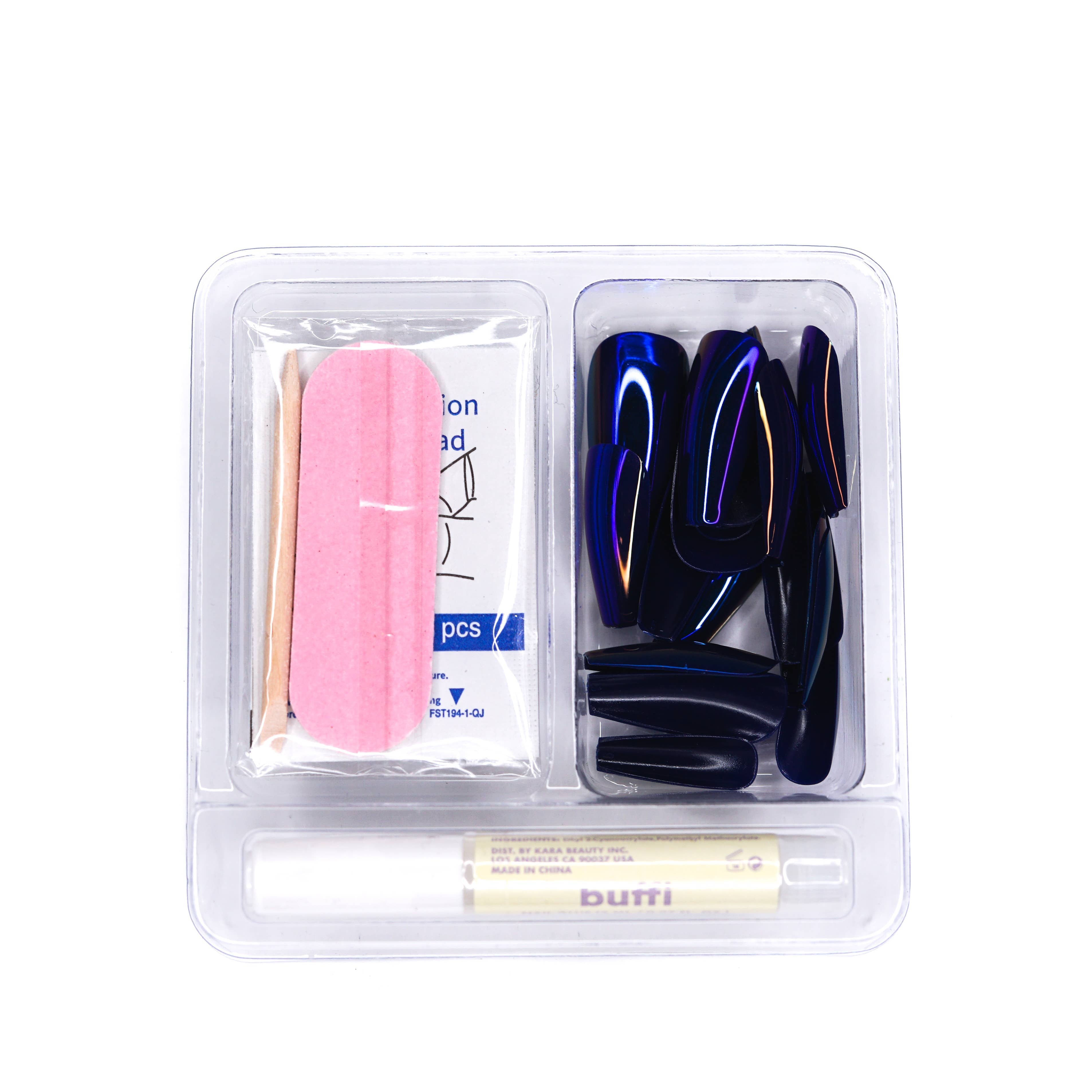 Heavy Metal – Long Coffin Press On Nails in Chrome Blue 💙 Shine like metal with Heavy Metal, the bold press on nail kit that brings edge and elegance together. These long coffin-shaped nails feature a striking chrome blue finish that delivers high-impact shine—perfect for making a statement while still pairing effortlessly with your everyday style. Whether you're heading to a concert, a night out, or just want to level up your look, these press ons give you pro-level style in minutes—no salon required. 💅 What’s Included: 💙 30 Press On Nails – Long coffin shape in a bold chrome blue finish 🧴 Nail Glue (2ml / 0.07 fl. oz.) – For a strong, lasting hold 📏 Mini Nail File – Shape and customize with ease 🌿 Wooden Cuticle Stick – For prepping your natural nails Bring on the shine with Heavy Metal Press On Nails—where glam meets rock and roll.