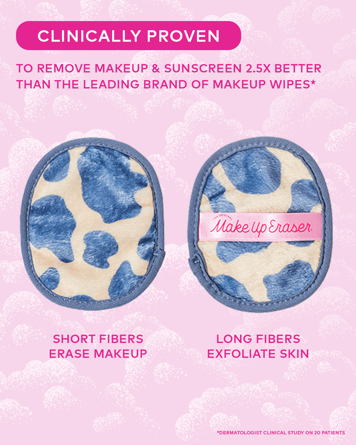 Includes 7 Daily MakeUp Erasers, 5in x 4in. Laundry bag included. Erase all makeup with JUST WATER™ including waterproof. Our patented, water-activated, cloud-soft fibers gently & easily remove all makeup & sunscreen from pores. 2 in 1 benefit: one side erases makeup & one side exfoliates skin. ✓ Dermatologist Recommended for sensitive skin ✓ SmartErase™ Technology ✓ Reusable & machine washable ✓ Great for everyday makeup ✓ ALCOHOL & FRAGRANCE FREE The Original MakeUp Eraser® is non-irritating and non-drying, making it perfect for sensitive skin. It's non-comedogenic, safe for lash extensions, & entirely oil-free for a fresh, comfortable experience. How to use: Wet with warm water. The warmer, the wetter, the better! Use gentle circular motions to erase makeup with the short fiber side. Flip to long fiber side (side with tag) to exfoliate the skin. Care: Machine wash hot & dry. Dryer sheet & fabric softener safe. Machine wash before first use. texas, rodeo, western, cowgirl