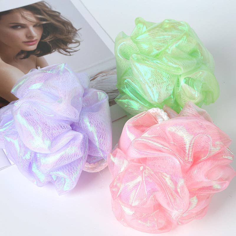 Dazzling Design: Featuring a sparkling tulle material, this bath pouf adds a touch of glamour to your shower or bath time, perfect for those who love to surround themselves with beautiful and eye-catching bath accessories. Luxuriously Soft and Plush: Crafted for ultimate comfort and luxury, this pouf is exceptionally soft and fluffy, providing a pampering experience that gently cleanses and exfoliates your skin. Rich and Creamy Lather: Designed to work up a dense, rich foam with your favorite soap or body wash, this pouf enhances your cleansing routine, leaving your skin feeling silky smooth and rejuvenated.