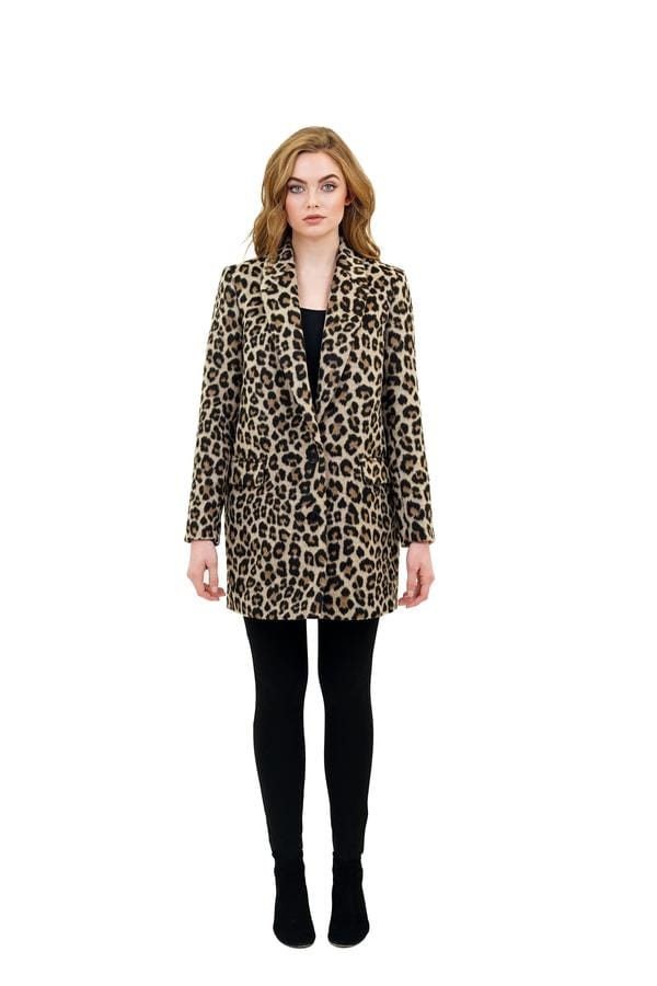Get a little wild with the Aura Leopard Blazer Jacket. Relaxed fit, sits below the hip. 2-Button enclosures. Material Shell: 66% Polyester / 17% Acrylic / 13% Wool / 4% Cotton. Material Inner: 100% Polyester