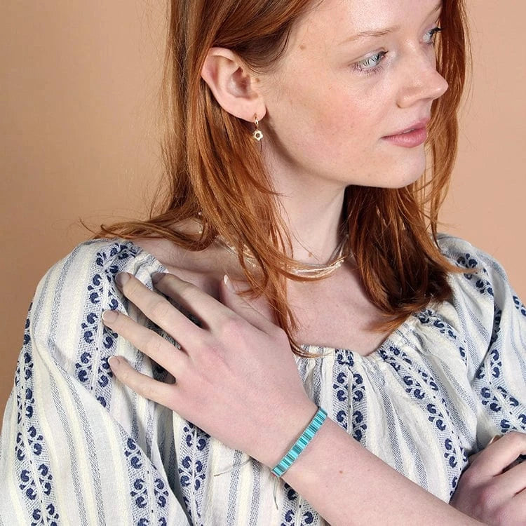 Springtime flowers on a delicate huggie post hoop. Gold-plate, 11mm hoop, 8mm drop.