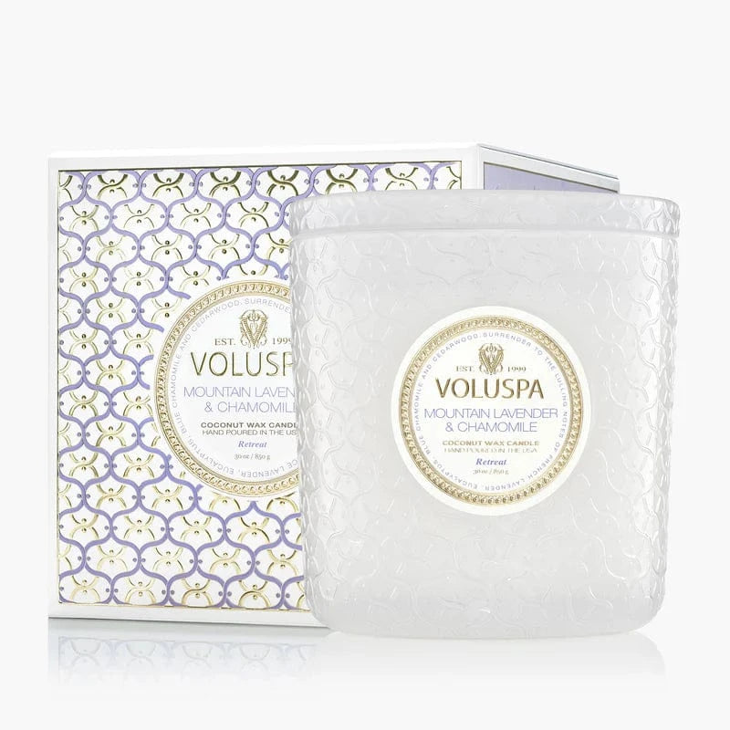 Voluspa's unique coconut wax blend is housed in a 30 oz. glass and topped with a matching lid that keeps the candle dust-free when not in use, and doubles as a base when lit. Our three wicks allow you to enjoy fragrance throw for 80 hours. Our candles are handcrafted in the United States and feature our proprietary, clean-burning coconut wax blend and natural wicks. Our products are free of phthalates, parabens, and sulfates and are never tested on animals. Up-cycle this best seller into a keepsake after the last burn.