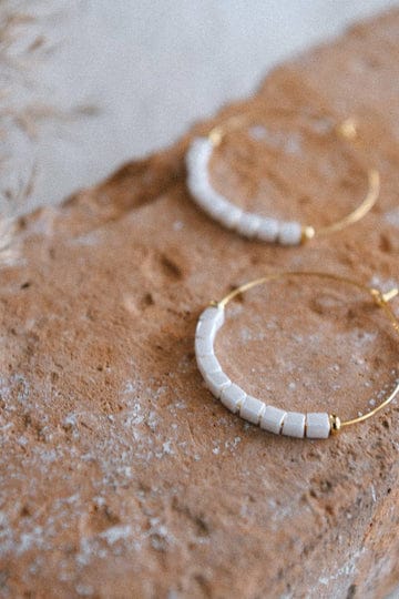 Illuminate your look with our Stargaze Beaded Hoop Earrings, inspired by the beauty of the night sky. Featuring delicate beads in celestial tones, these lightweight hoops bring a touch of boho elegance to your jewelry collection. Perfect for everyday wear or dressing up for special occasions, the intricate beadwork and sleek hoop design make these earrings a versatile accessory. Their shimmering details capture the essence of stargazing under a sparkling sky. - ST