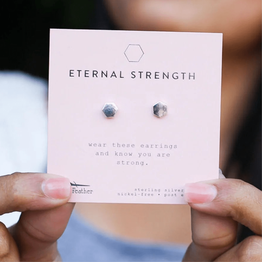 ETERNAL STRENGTH in the form of dainty sterling silver hexagon studs. Wear them and know you are strong.