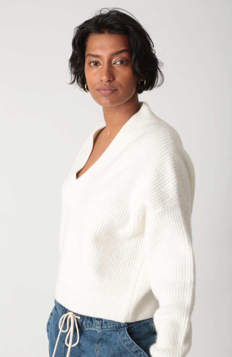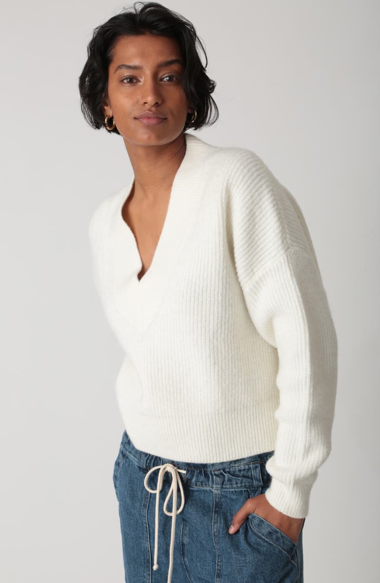 Substantial ribbing knit from wool-kissed yarns gives this boxy, layer-ready sweater just-right warmth you'll appreciate as the season deepens.