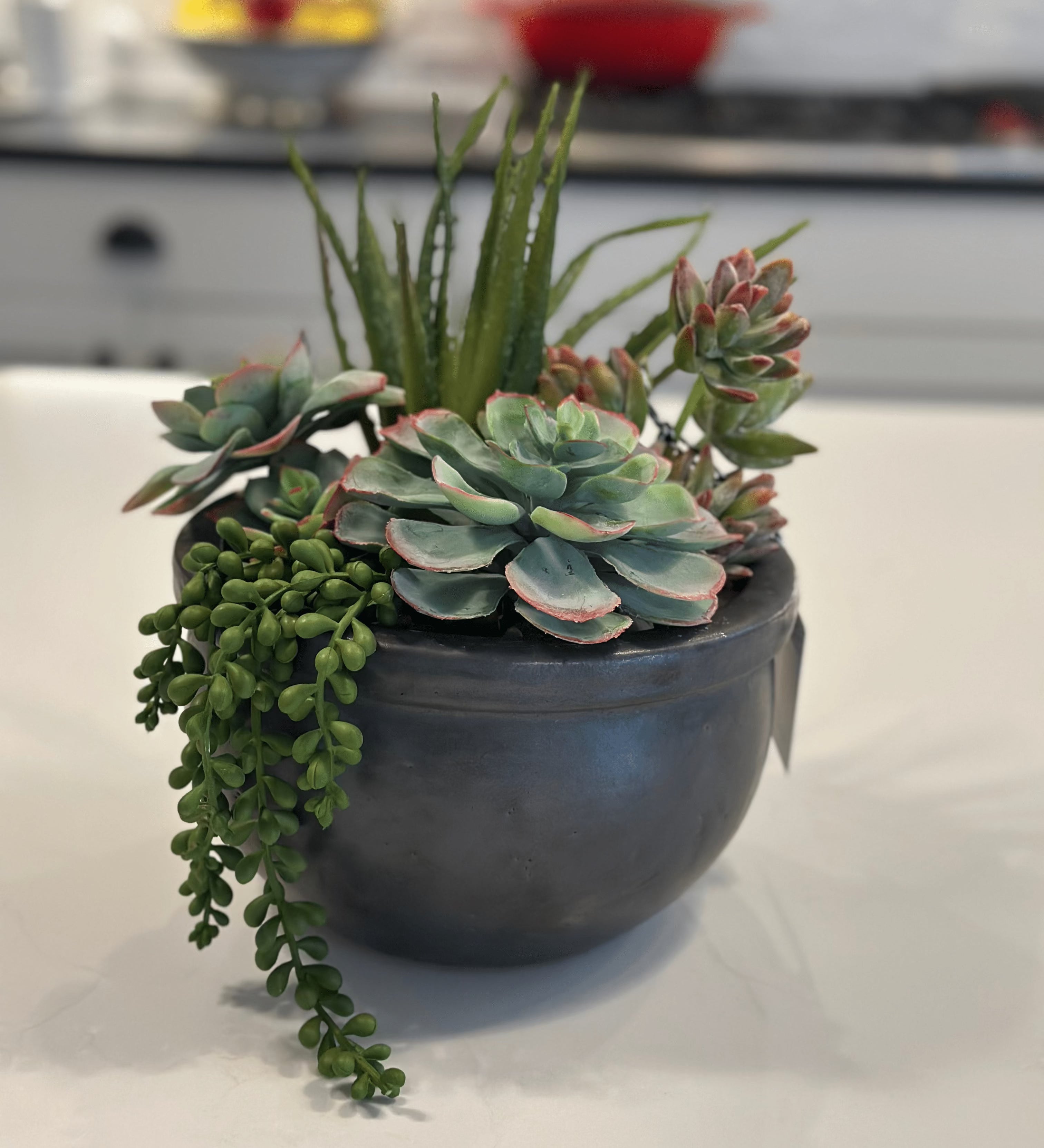 The sleek charcoal pot lends a modern, sophisticated edge, making it a versatile accent for offices, shelves, side tables, or entryways. With no watering or upkeep required, it’s an effortless way to enjoy the beauty of succulents year-round.