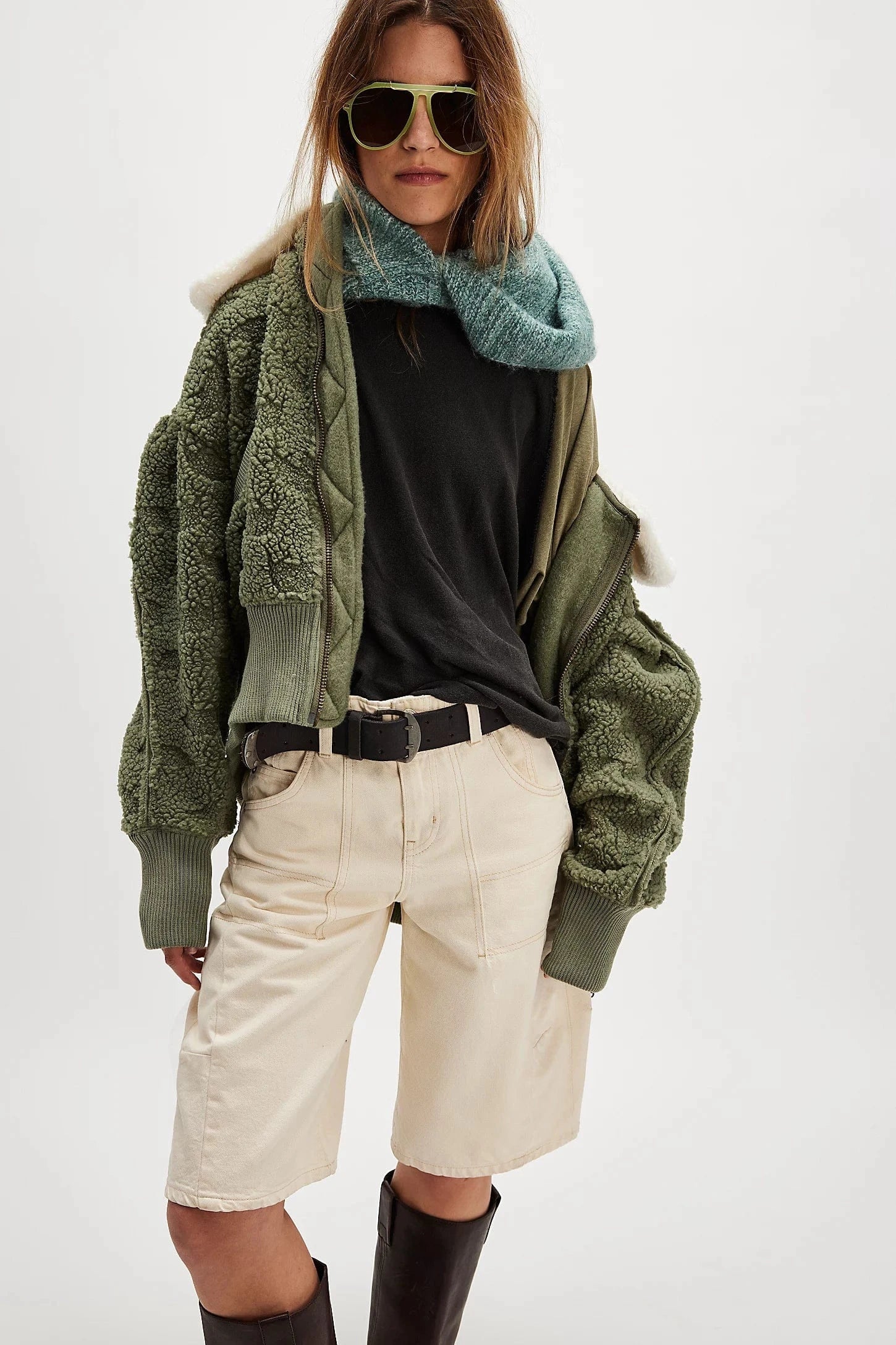 Effortlessly cool and cozy, this soft cardi features a sherpa fabrication and exaggerated collar detail with a front-zip closure and ribbed hems.