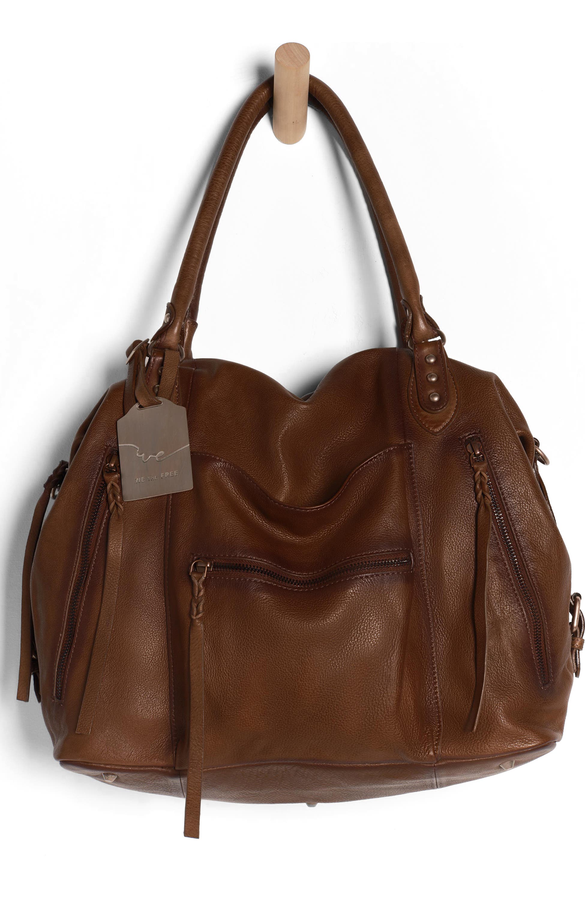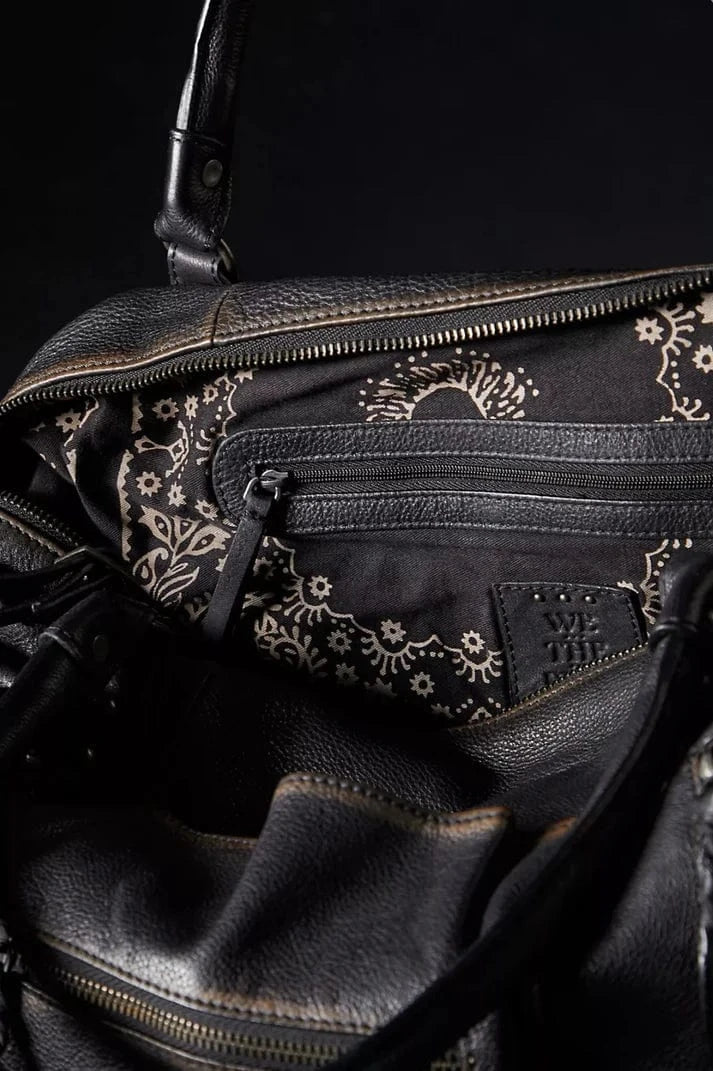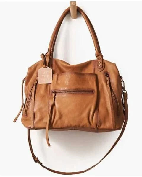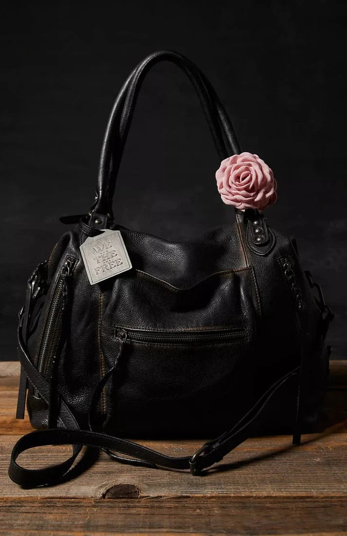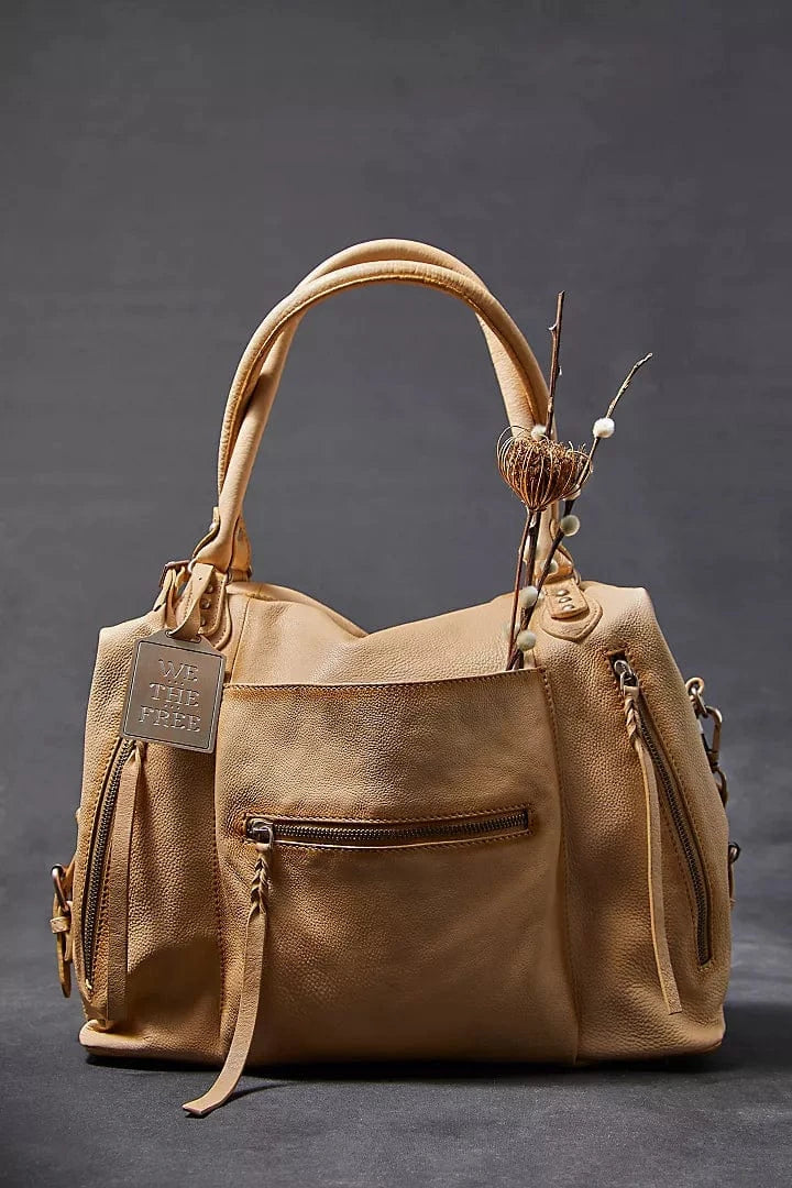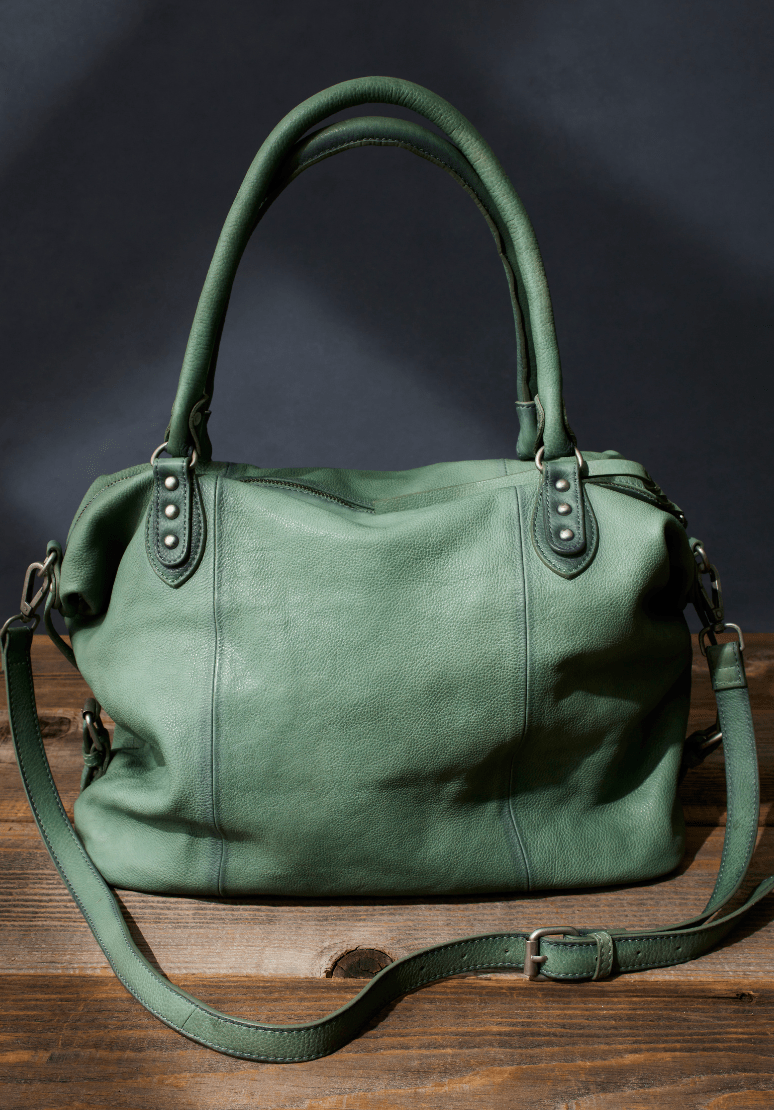 Features: Slouchy style, spacious interior, worn leather fabrication, exterior zipper compartments, exterior and interior pockets, buckle details, two top handles, detachable and adjustable shoulder strap, zipper closure, branded tag