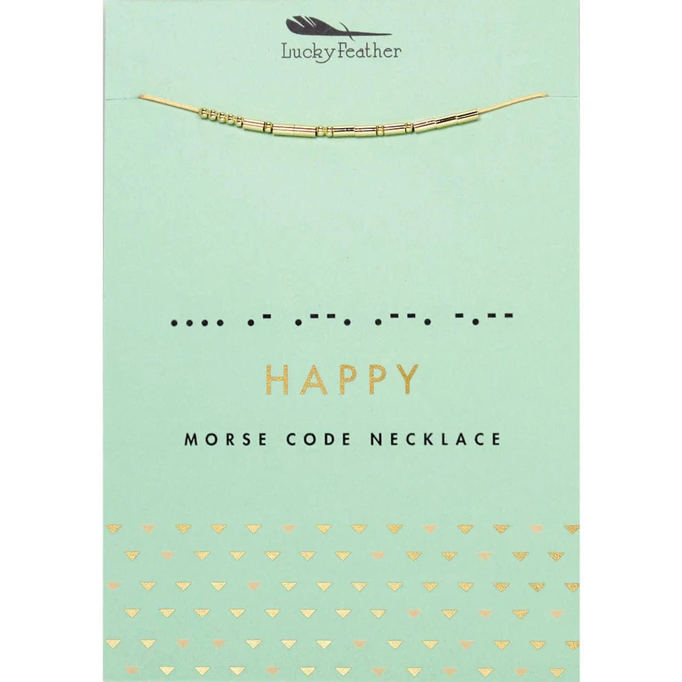 Morse Code Jewelry represents a subtle, secret reminder of happiness and positivity. Delicate and stylish, this necklace can be worn from day to night on both causal and dressy looks.