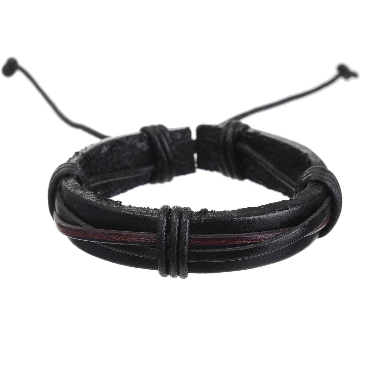 Rugged and Sexy. This leather bracelet is ideal for that weekend warrior or hot men's look. Leather. Tie in back allows for flexible sizing. Artisan look and style. Unique weave and pattern. Dimensions: One Size Fits All. Material: Leather. Dimensions: 8-8.5.