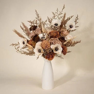 The colors used in the finished example are White Wedding, Brown, Toasted Coconut, Hazelnut. The color of the vase is White. This beautiful centerpiece craft kit is the perfect thing to add as decor for your wedding! Use it as a head table centerpiece or other decor around your venue. Perfect for large or small weddings.