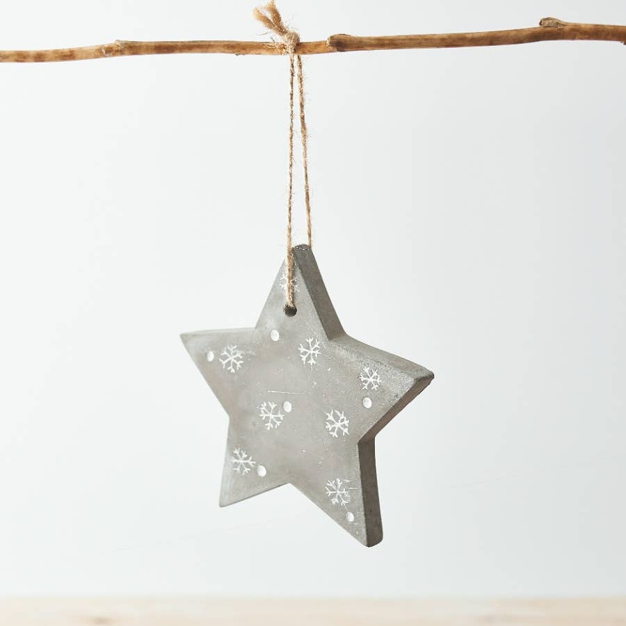 Hanging Concrete Star With Snowflakes 10cm