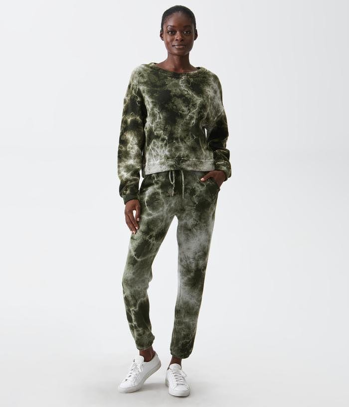 Dyed by hand, the storm wash sweatshirt is made in cozy terry and features a crew neckline, long fabric-focused sleeves, and cropped waist.