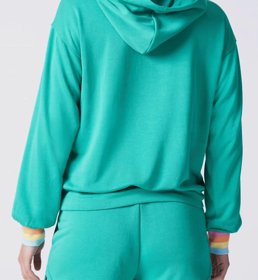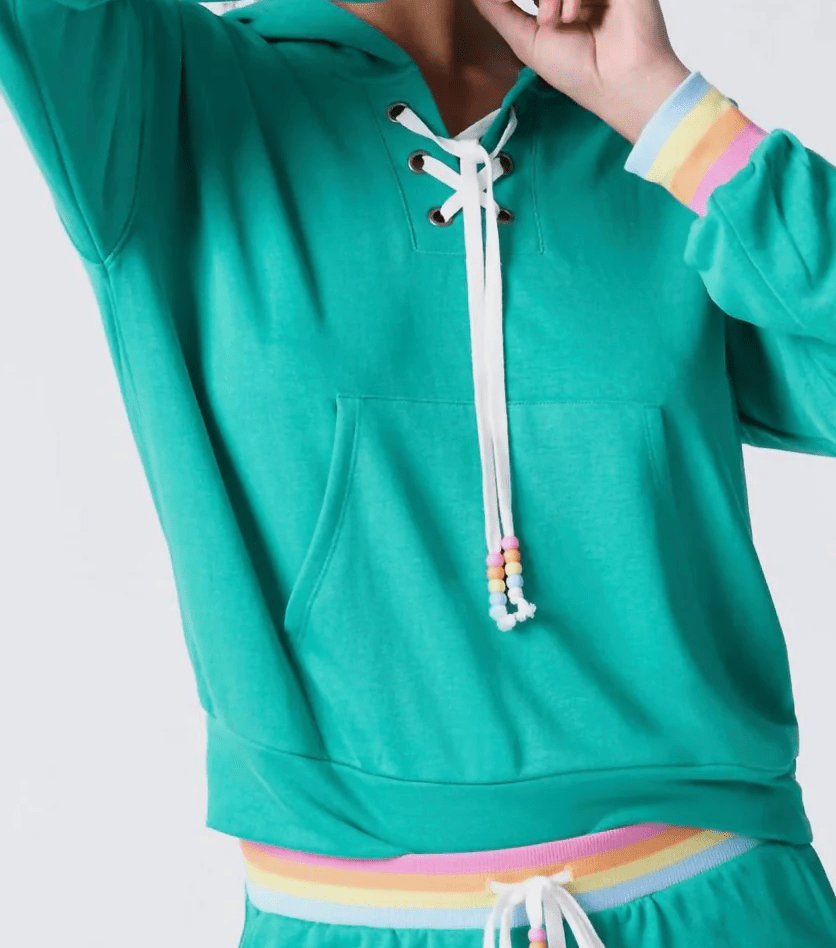 Cozy fabric, impeccable design - Meet the sweatshirt that you'll never want to take off.This hoodie is crafted from a soft blend of 74% Modal, 26% Polyester with a lace-up drawcord and playful rainbow accents for a cozy, stylish look. Perfect for layering or wearing solo.