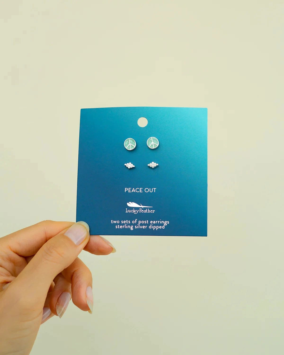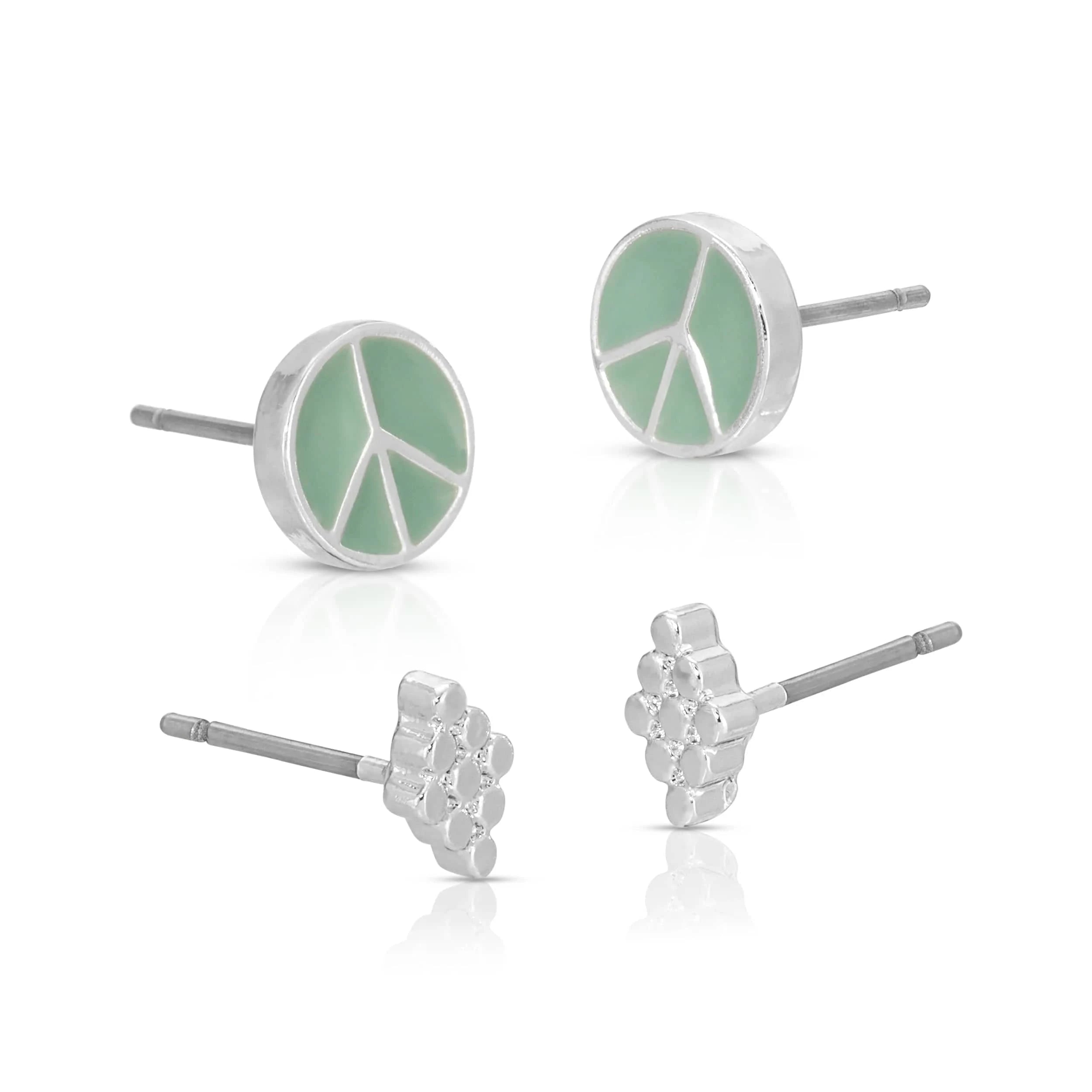 Two sets of sterling silver dipped and nickel-free stud earrings with post backing. Perfect for styling with our hoops for a dreamy earscape!
