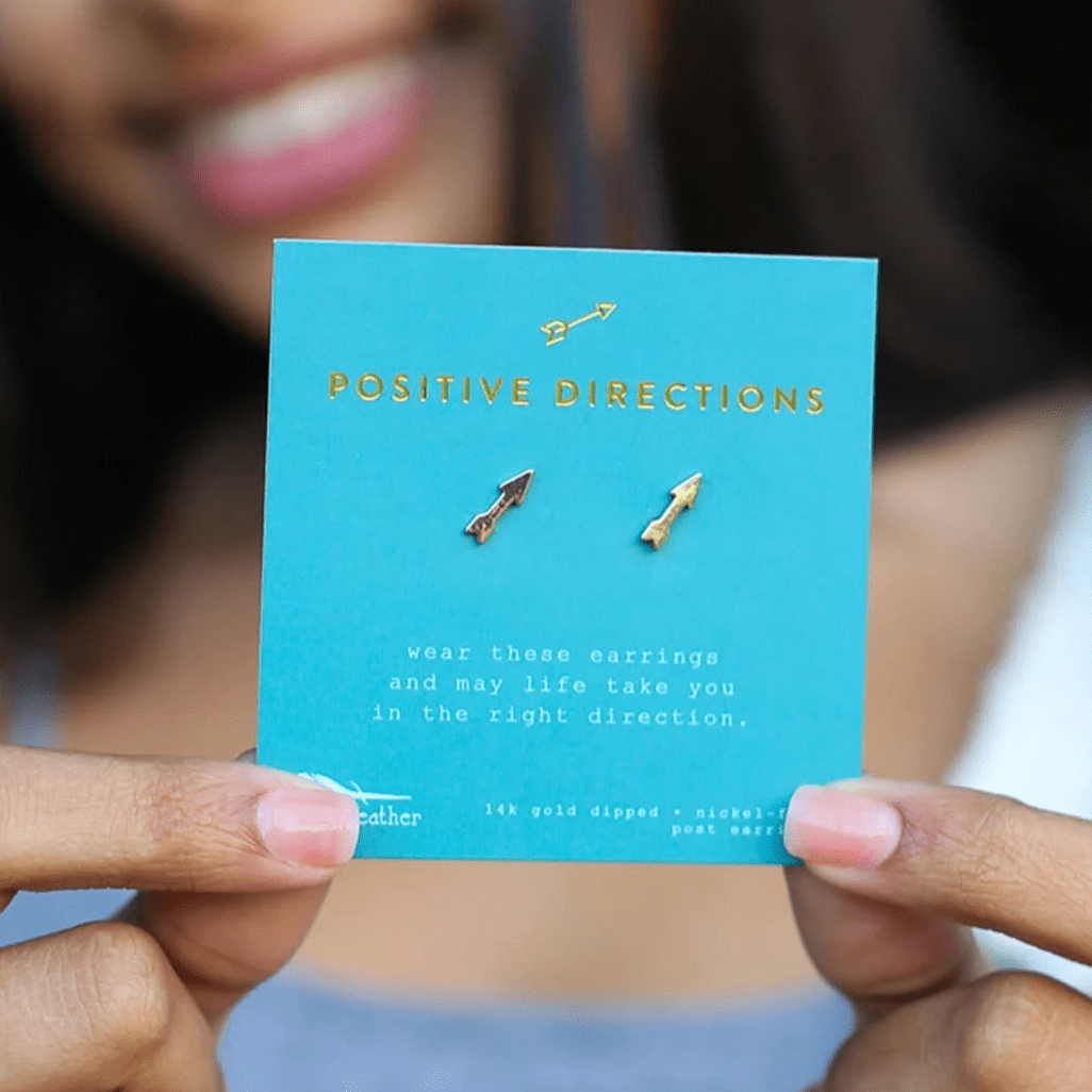 POSITIVE DIRECTIONS in the form of dainty gold-plated arrow studs. Wear them and let life point you in the right direction.