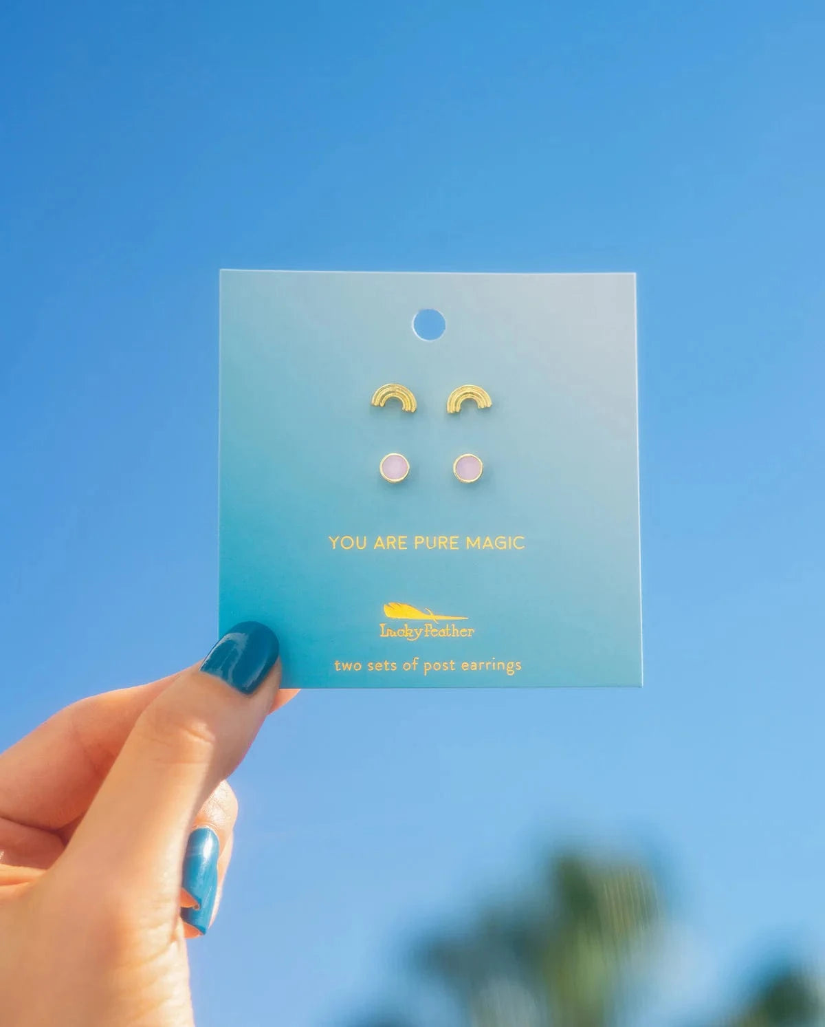 Lucky Feather Pure Magic - Rainbow + Disc Studs