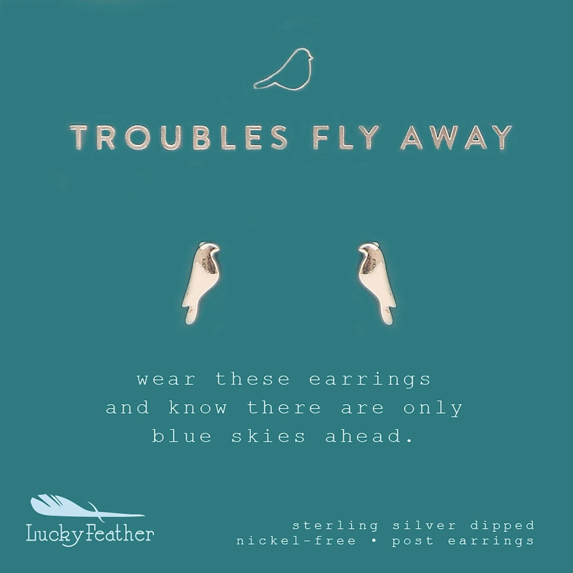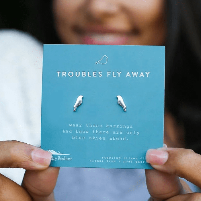 TROUBLES FLY AWAY with our dainty sterling silver bird studs. Wear them and let life take you in the right direction.