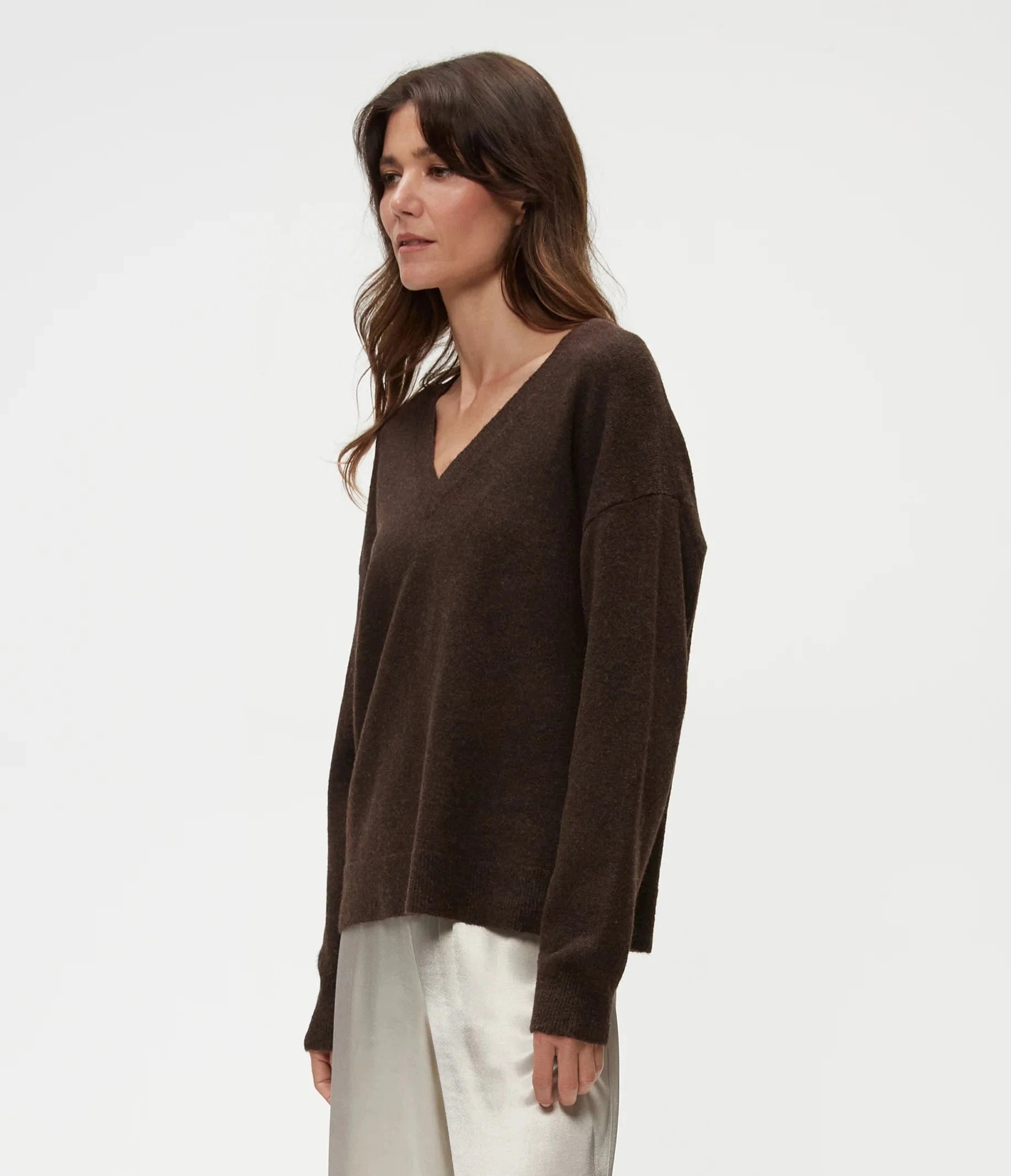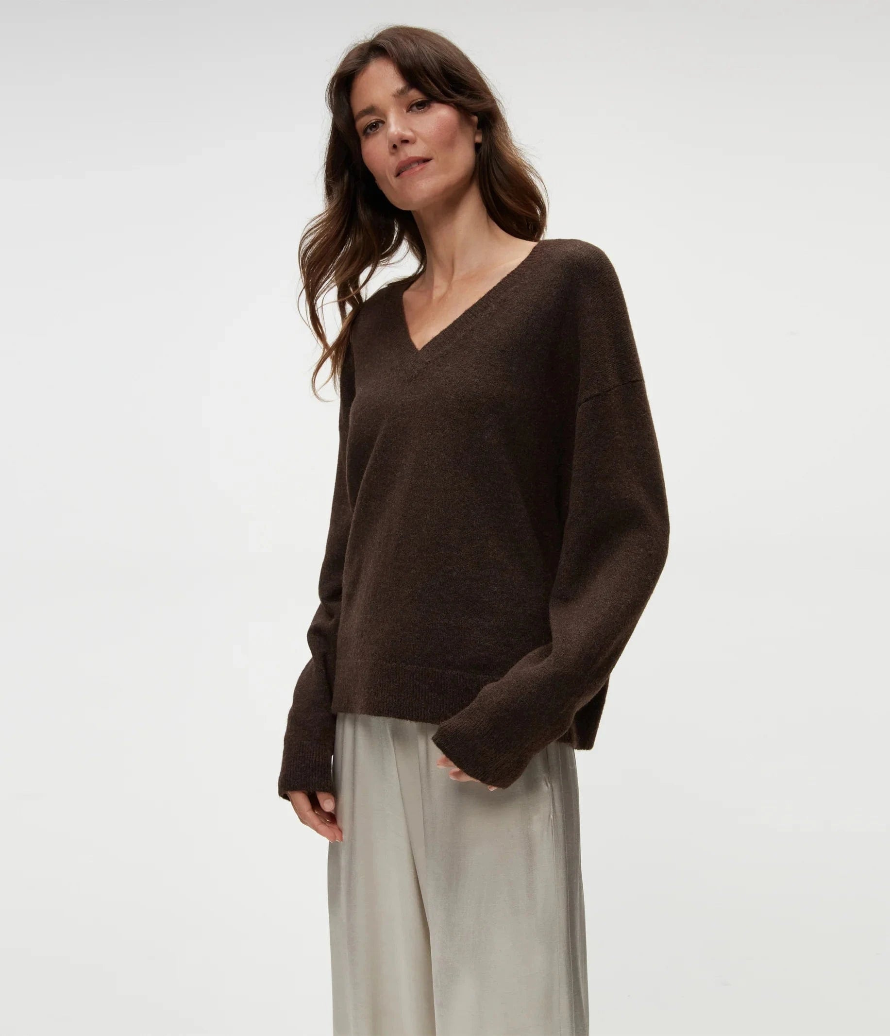 This easy sweater will make an effortless statement however you style it. This cozy-chic sweater is knit with a high-caliber, plush yarn giving it an incredibly soft hand feel. Cut in a roomy silhouette, the Hendrix is crafted with a V-neckline and dropped shoulders. The neck, cuffs, and hem are ribbed. Wear yours with denim or one of our washable satin skirts.
