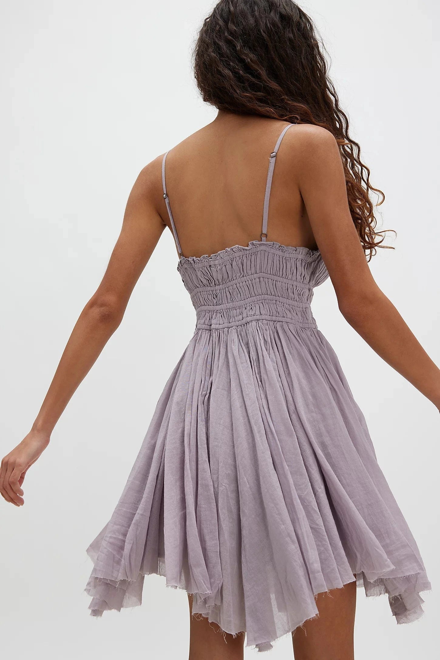 So beautiful and billowy, this mini from our FP One collection, is featured in a soft, gauzy fabrication and lightweight design with a deep V-neckline and raw trim.