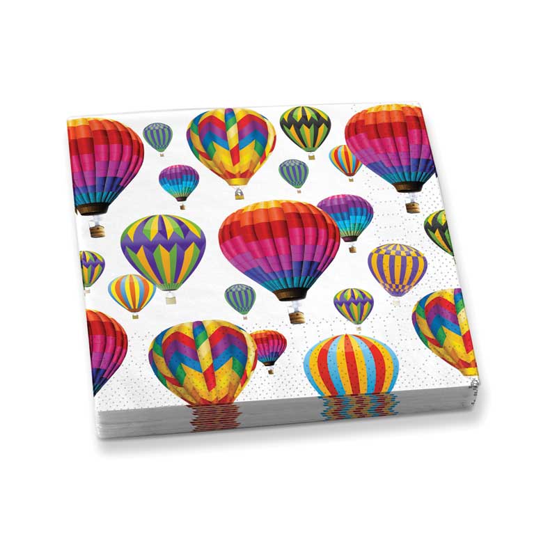 Hot air balloons beverage napkins set of 20 (p/n 76-774). Let's just float along! These beverage napkins are 3 ply, and contain 20 per pack. Color - red.