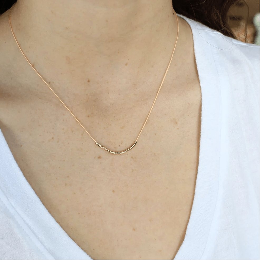 Morse Code Jewelry represents a subtle, secret reminder that you are brave. Be courageous! Delicate and stylish, this necklace can be worn from day to night on both causal and dressy looks.