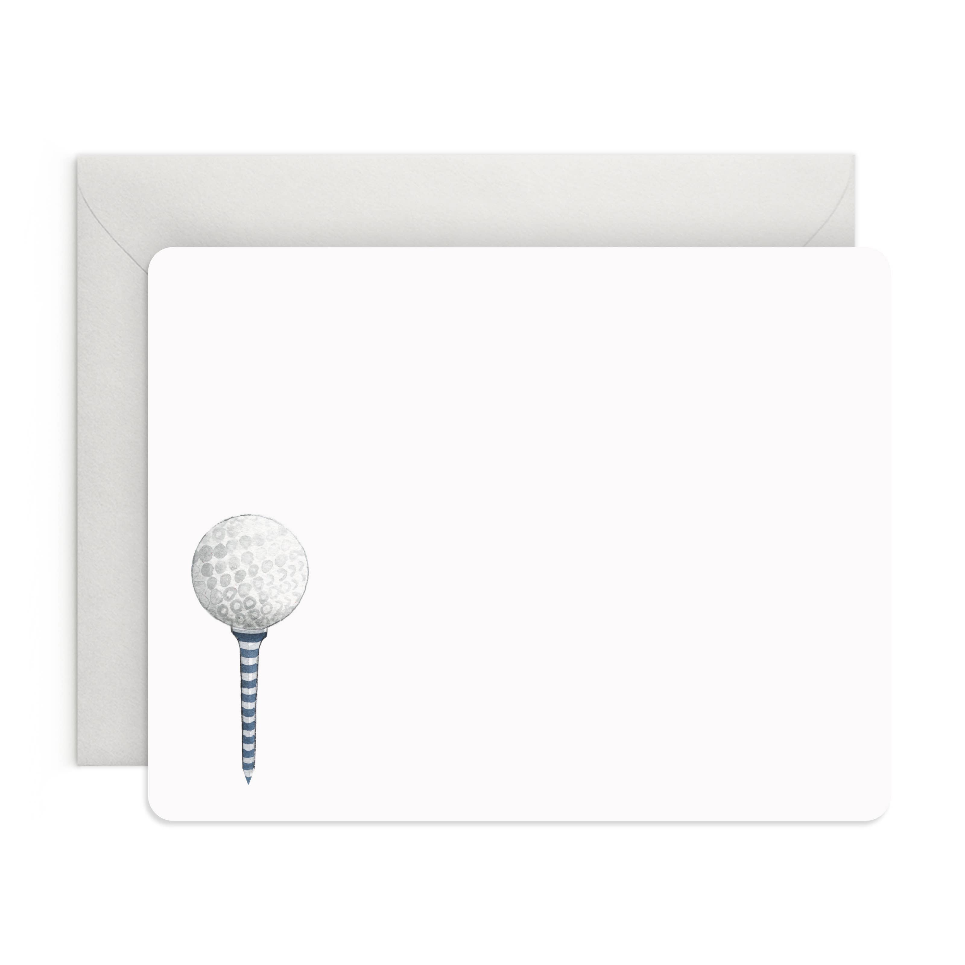 For the golf enthusiast, our Golf Tee Flat Notes offer a stylish and thoughtful way to send quick notes, thank-yous, or reminders. This boxed set of 8 flat notecards features a sleek design inspired by the game of golf, making it the perfect stationery for any golf lover. Whether used for personal messages or as a unique way to express appreciation, these flat notes are ideal for any occasion. Printed on heavyweight, natural white paper, each card provides a smooth surface for your personalized writing. The rounded corners and fun backing design add a touch of playfulness, while still maintaining an elegant and polished look. Proudly made in the USA, the Golf Tee Flat Notes come in eco-friendly, plastic-free packaging, reflecting our commitment to sustainability. Product Highlights: Boxed set of 8 flat notecards (4.25 x 5.5 inches) Printed on heavyweight, natural white paper Rounded corners with fun backing design Eco-friendly, plastic-free packaging Made in the USA