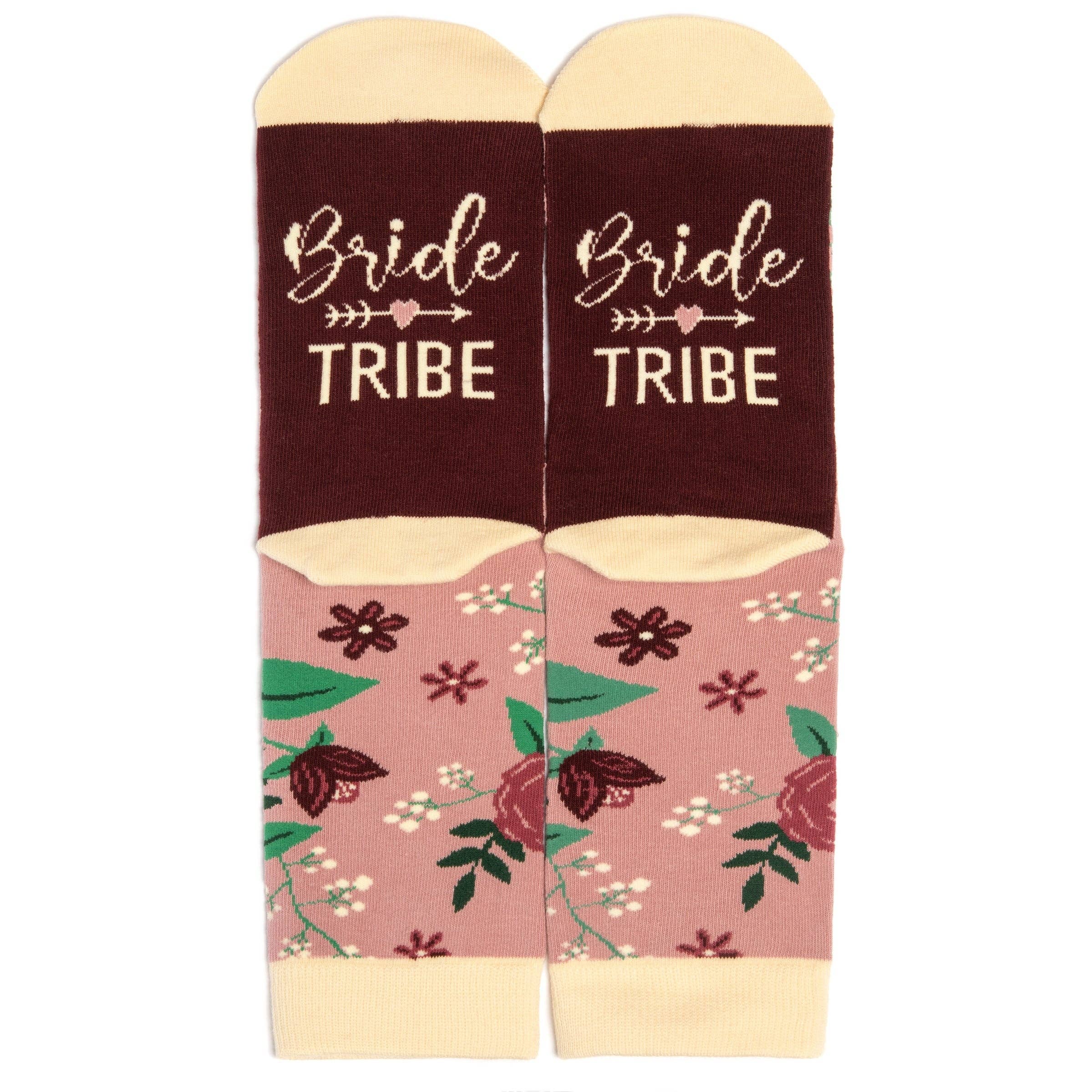 Say 'I do' to cozy camaraderie! Keep the whole Bride Tribe from getting cold feet—literally—with these delightfully comfy, floral-patterned socks. Perfect for adding a touch of whimsy to bachelorette parties, bridal showers, or wedding day festivities, these socks are the ultimate gift to ensure the entire squad steps into the celebration with warm feet and big smiles. Make every moment even more memorable with a dash of fun and a sprinkle of floral charm for the bride and her tribe! Whether it's for the bachelorette party, bridal shower, or wedding photoshoot, these socks add a fun and whimsical touch to any celebration. Not only do they keep everyone's toes cozy, but they also serve as a memorable keepsake that each friend can cherish long after the big day. It's a delightful way to show appreciation for your bridal party and ensure everyone steps into the festivities with style and a smile!