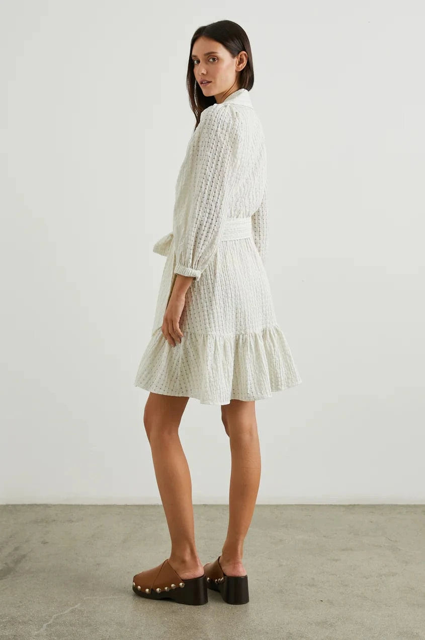 Every closet needs a little white dress. Lucky for you, Kiara is up to the task, with a unique seersucker fabrication and collared silhouette. This style pairs with heels just as well as it does with sandals for versatile wear across many occasions.