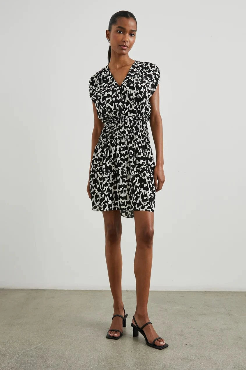 A mini dress that's worth the hype. The Siera offers an oversized flowy bodice, flattering v-neckline, and thick elastic cinching at the waist. Pair it with sandals for an on-the-go look, or dress it up with wedges.