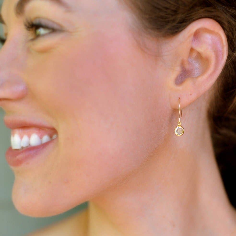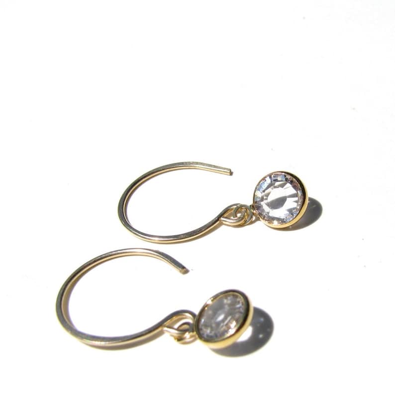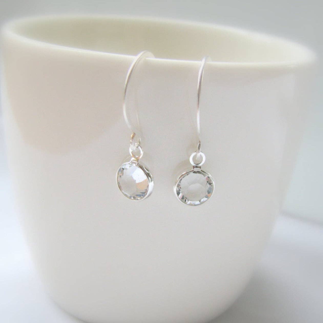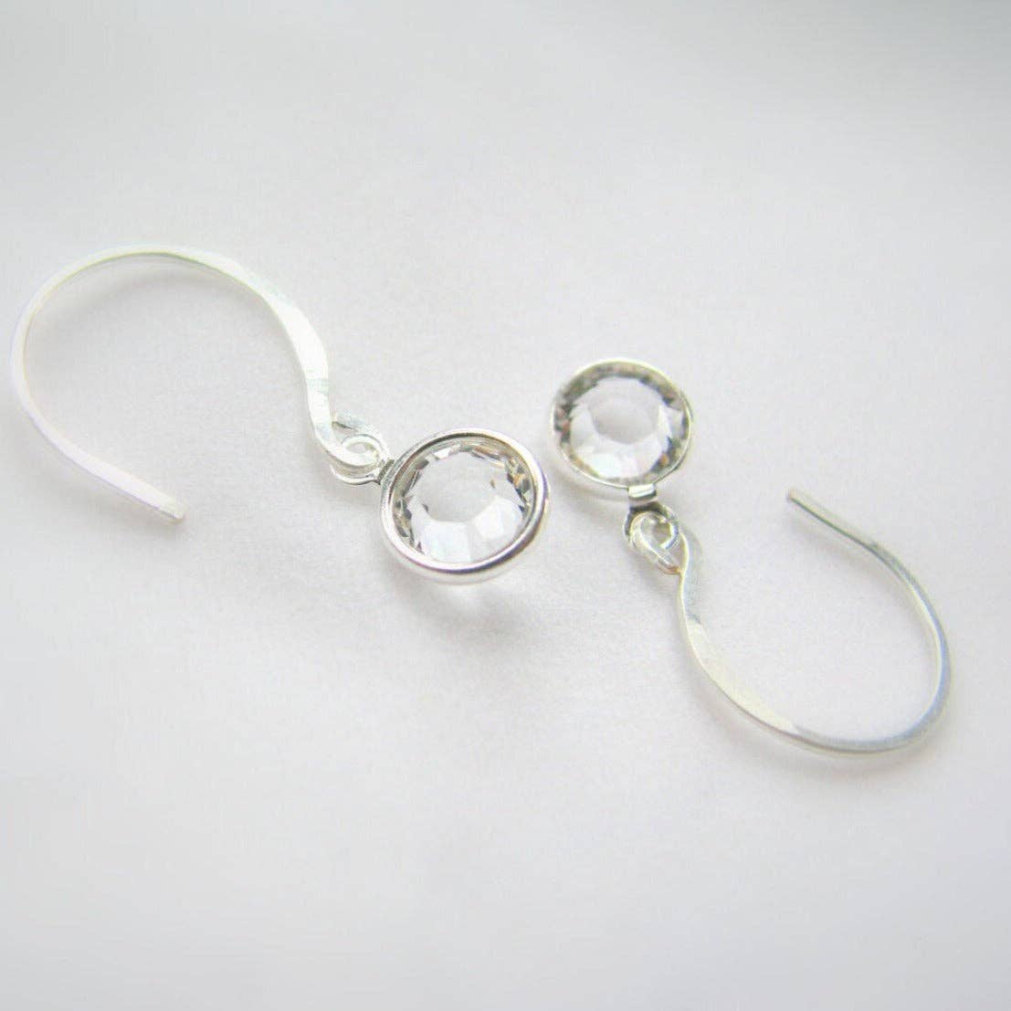 Delicate, tiny drops from your ears! Bezel / channel set Swarovski crystals dangle from hand formed sterling silver ear wires. These round earrings are perfect for everyday, easy wear. ~Swarovski Crystal measures 6mm in diameter ~Ear wires are hand formed from 14k gold filled or .925 sterling silver metal. Sela+Sage is a hand crafted jewelry line with all pieces designed and made in Lake Oswego, Oregon USA.