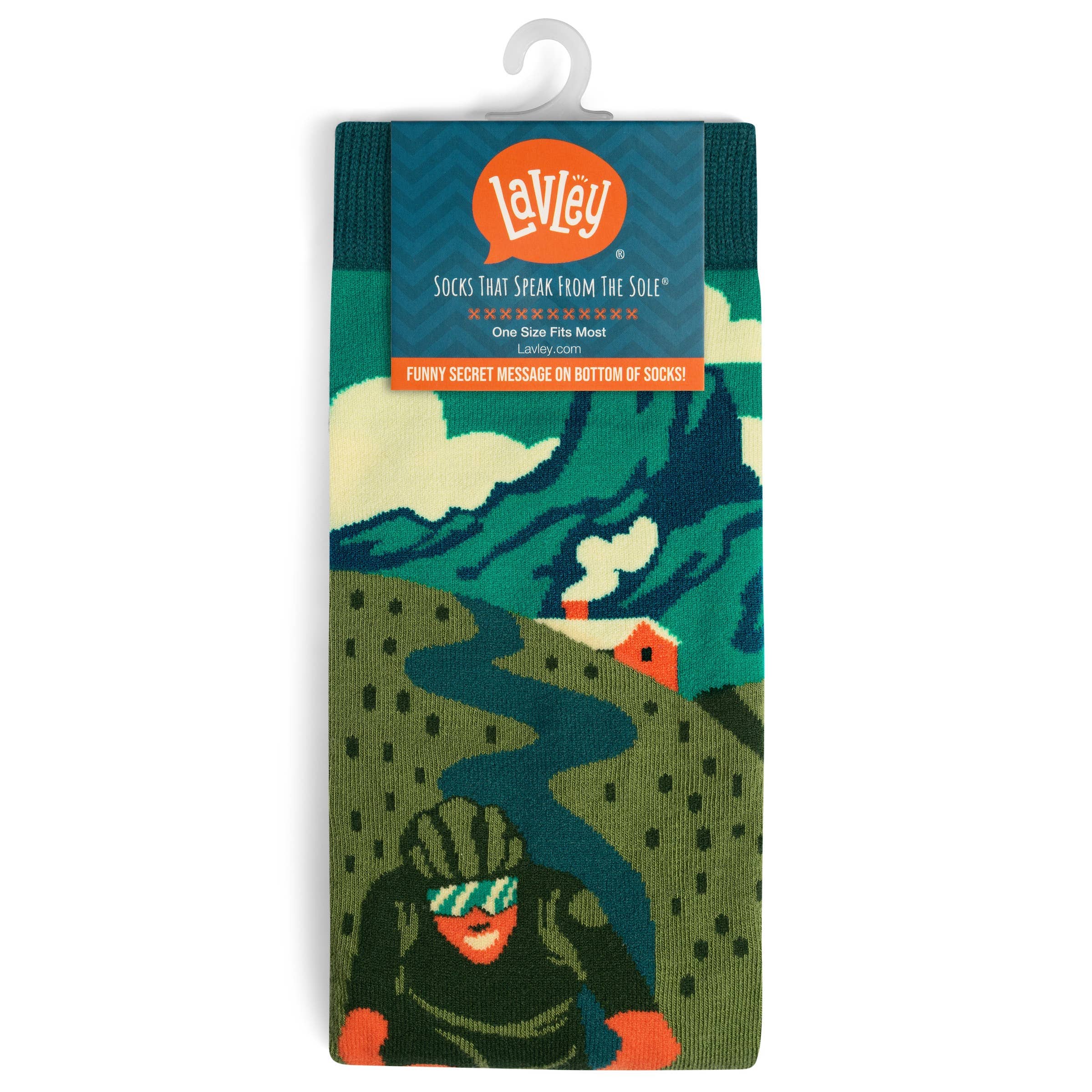 Gear up with our fun bike socks for cyclists who love a pedal-powered adventure! Inspired by The Tour de France, these socks depict racers cruising on an epic mountain road. Plus there’s a wheelie awesome hidden message on the bottoms of each sock: "This is How I Roll." Designed as unisex crew length socks, they fit most men and women. They're the perfect funny bike gift that will keep cyclists smiling whether they're on the saddle or relaxing at home. Crafted with premium materials and designed to last, these socks are a winner for your feet. Made from a luxurious cotton blend, they'll have your feet feeling tuned up and ready to ride! Show your pedal power in style!